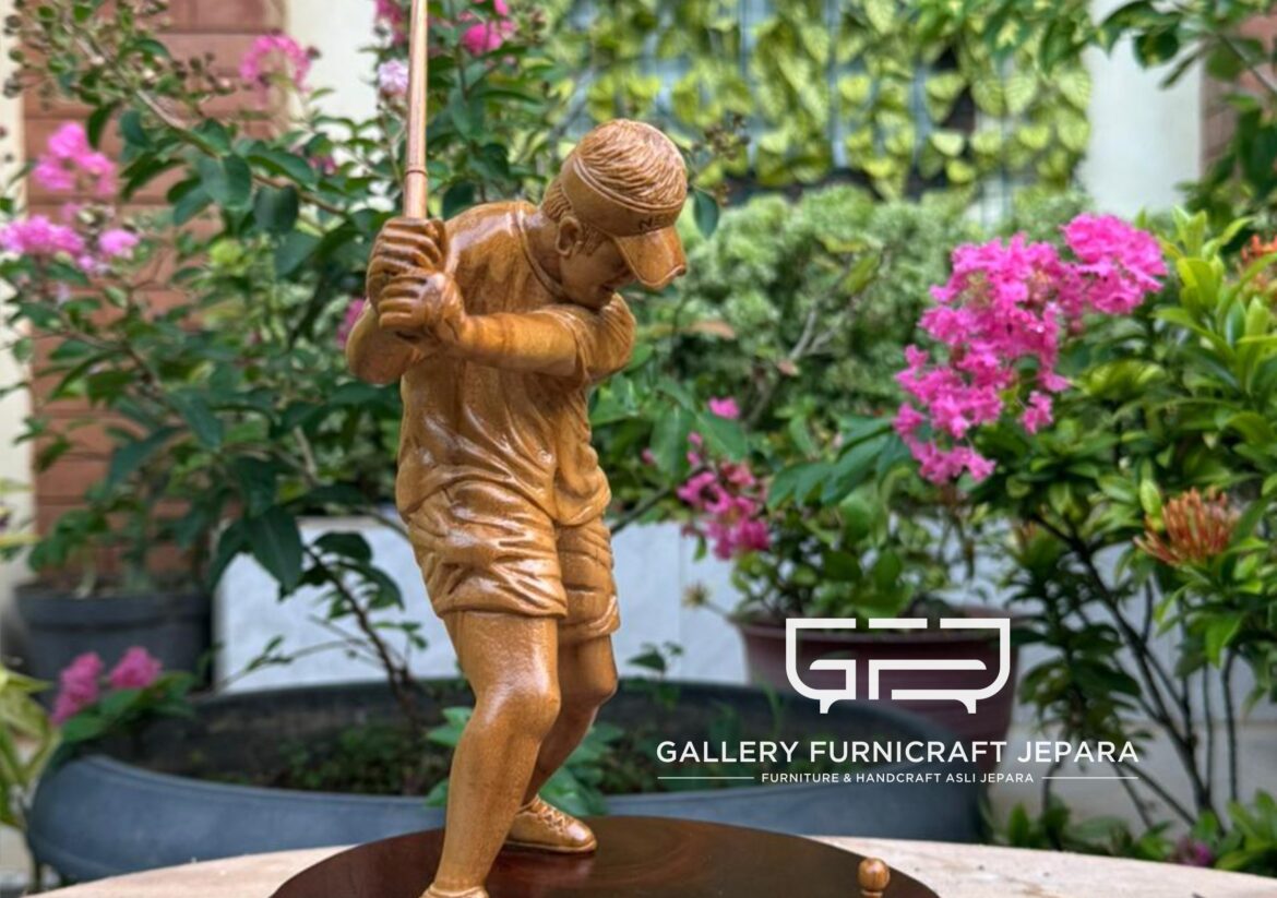 CUSTOM CINDERAMATA PATUNG BERMAIN GOLF KAYU JATI 20CM Open Pre Order, dekorasi patung bermain golf, diukir oleh seniman ukir berpengalaman asli jepara kota ukir, Original Product by Gallery Furnicraft Jepara Spesifikasi Product : Patung Golf .