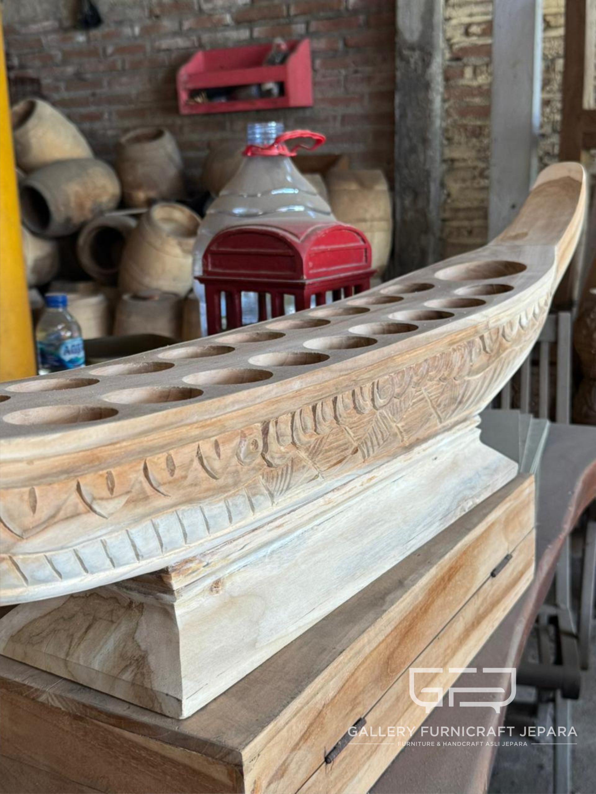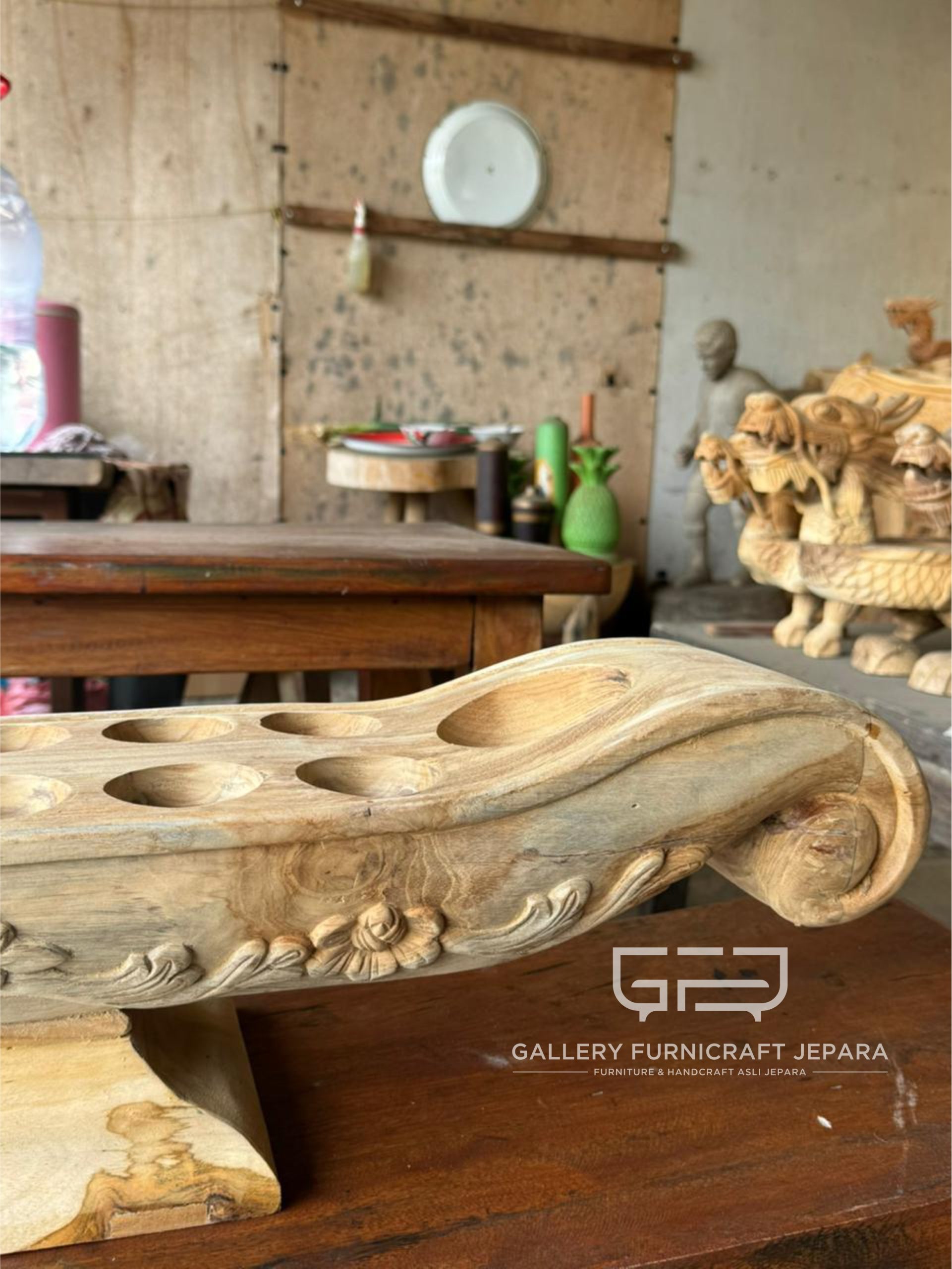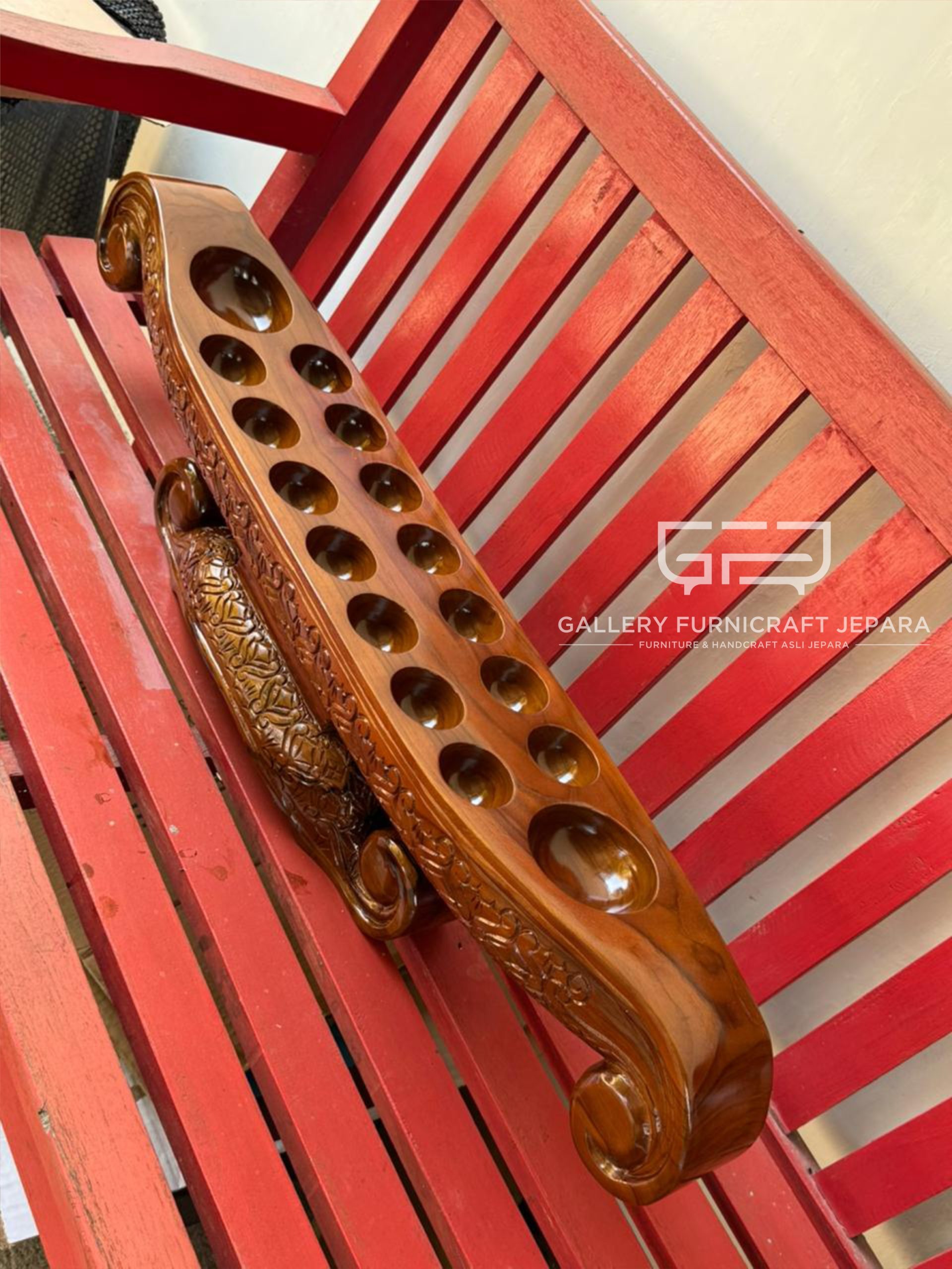 DAKON 7 LUBANG GAMELAN KAYU JATI UTUH FINISHING GLOSSY || PRE ORDER                 Dakon Congklak mainan tradisional model gamelan 7 lubang, material kayu jati premium solid utuh, diukir oleh seniman asli jepara, finishing natural, product by Gallery .