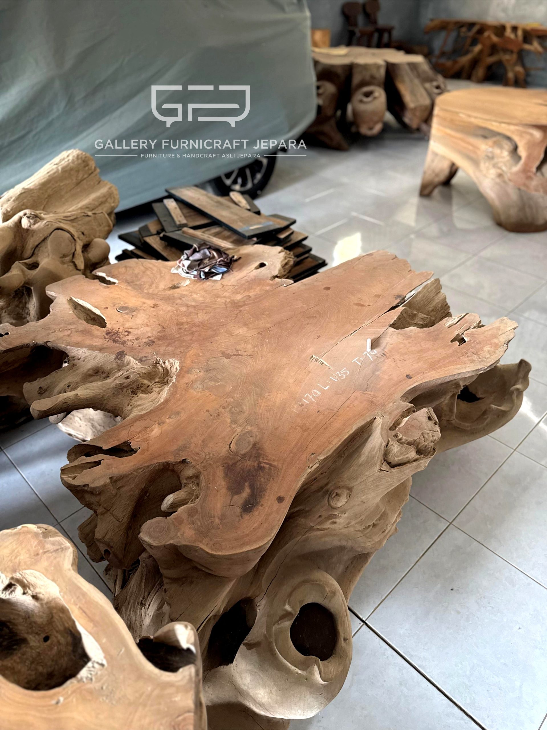 MEJA AKAR GENTONG JATI SOLID 170X135X70 CM || READY STOCK                   Meja Akar Jati gentong asli, utuh tanpa sambungan, product by Gallery Furnicraft Jepara. Spesifikasi Product : Meja Akar Dimensi : 170x135x70 CM Material : Jati .