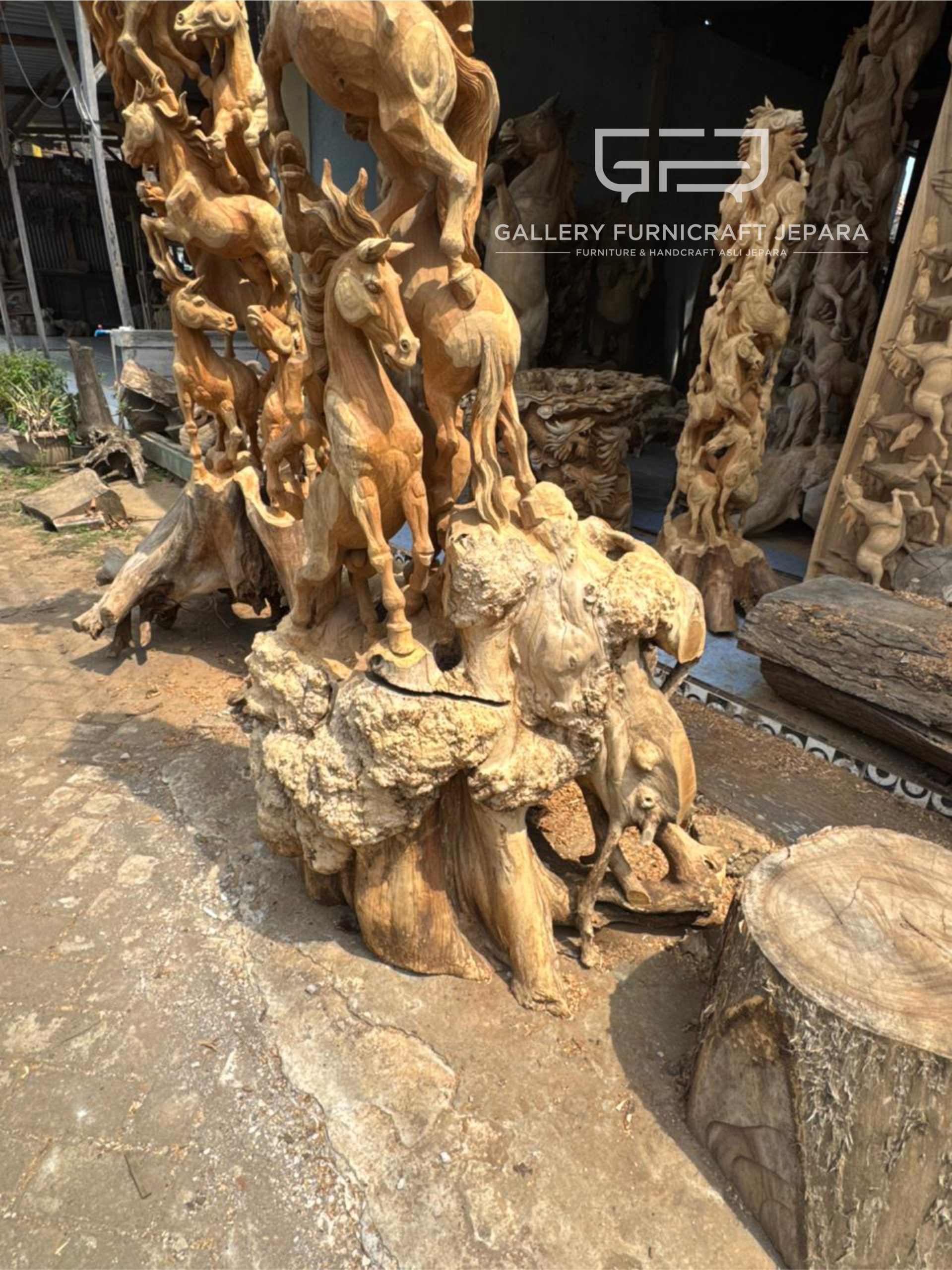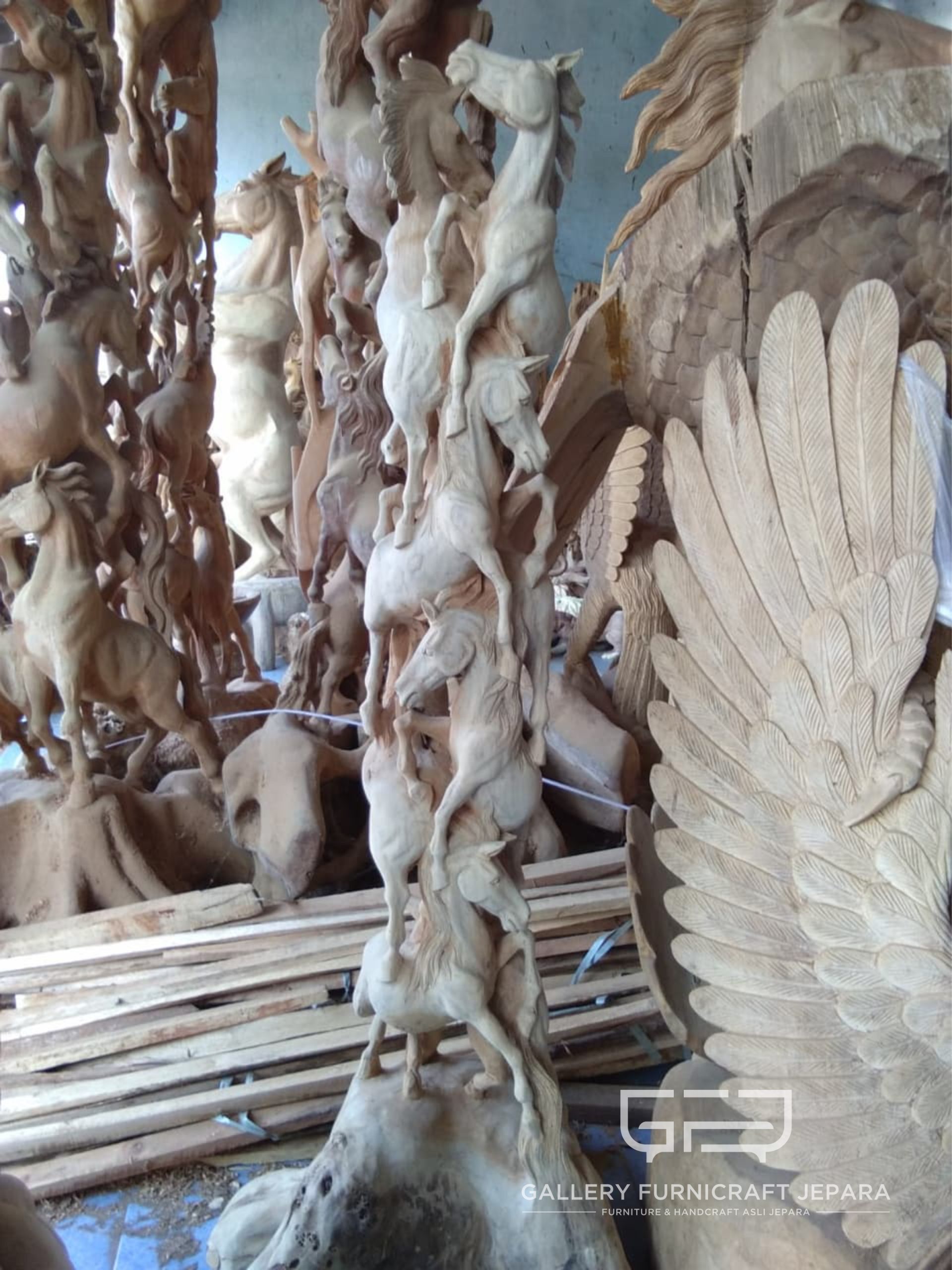 RELIEF UKIR KUDA MELINGKAR 170 cm                   *READY STOCK* Best seller ukiran relief kuda pohon jati utuh tanpa sambungan, finishing menggunakan melamine doff Spesifikasi Product : Patung Relief Dimension : Tinggi 170cm Material : Kayu Jati, .