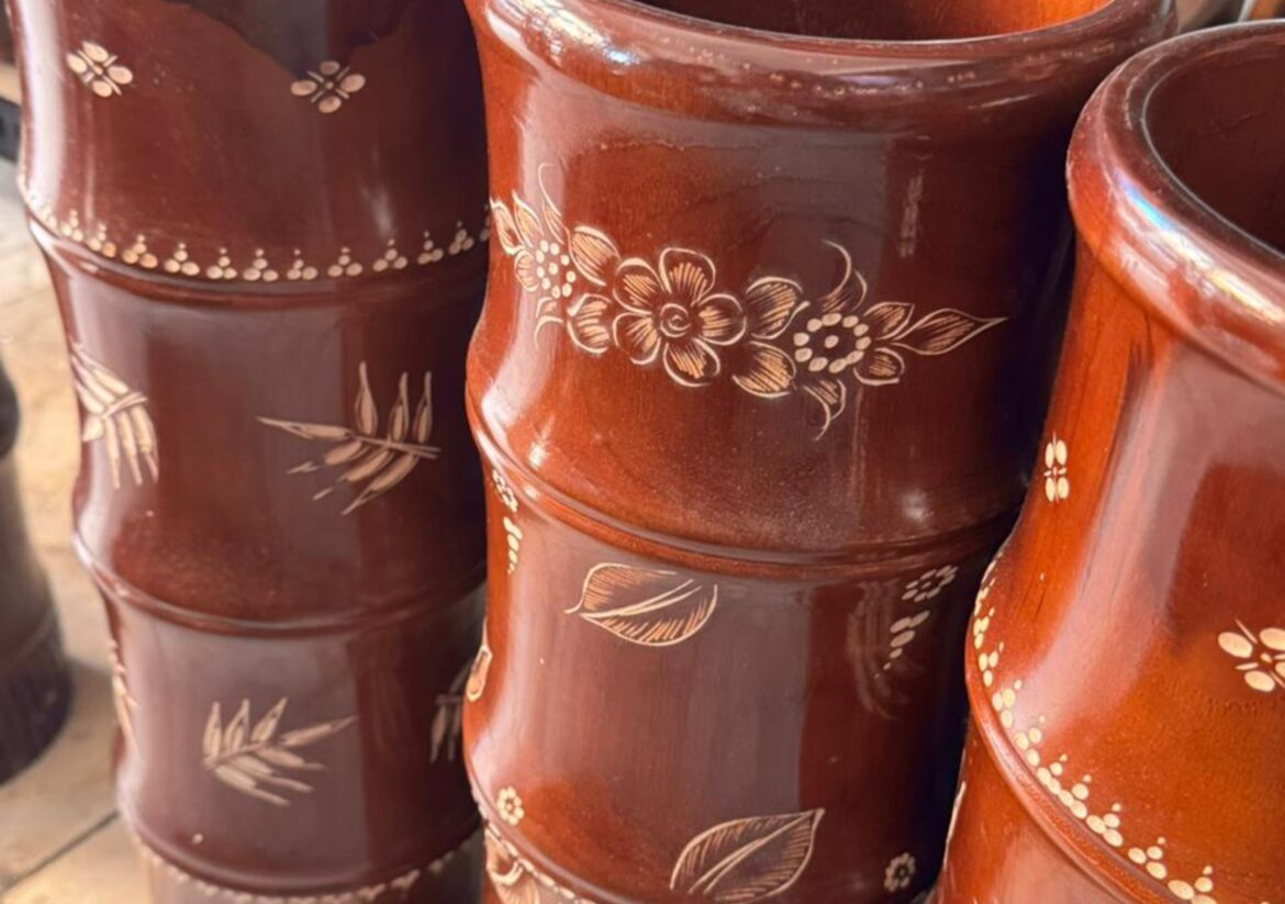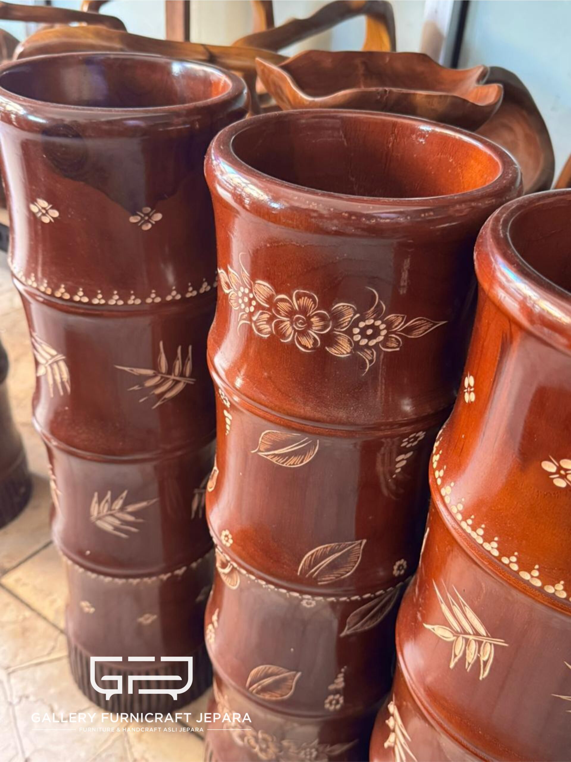VAS BUNGA BAMBU KAYU JATI 60 CM Ready, Vas bambu kayu jati solid ukuran 60cm, finishing meggunakan warna natural asli kayu yang memperlihatkan corak asli keindahan kayu jati dan di Top coating menggunakan melamin, Original .