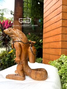 CUSTOM PATUNG KOMODO DRAGON PENYELAM KAYU JATI 25CM Open Order, Custom hadiah patung komodo penyelam material kayu jati solid, diukir oleh seniman ukir berpengalaman asli jepara kota ukir, finishing menggunakan coating melamine natural doff, Original .