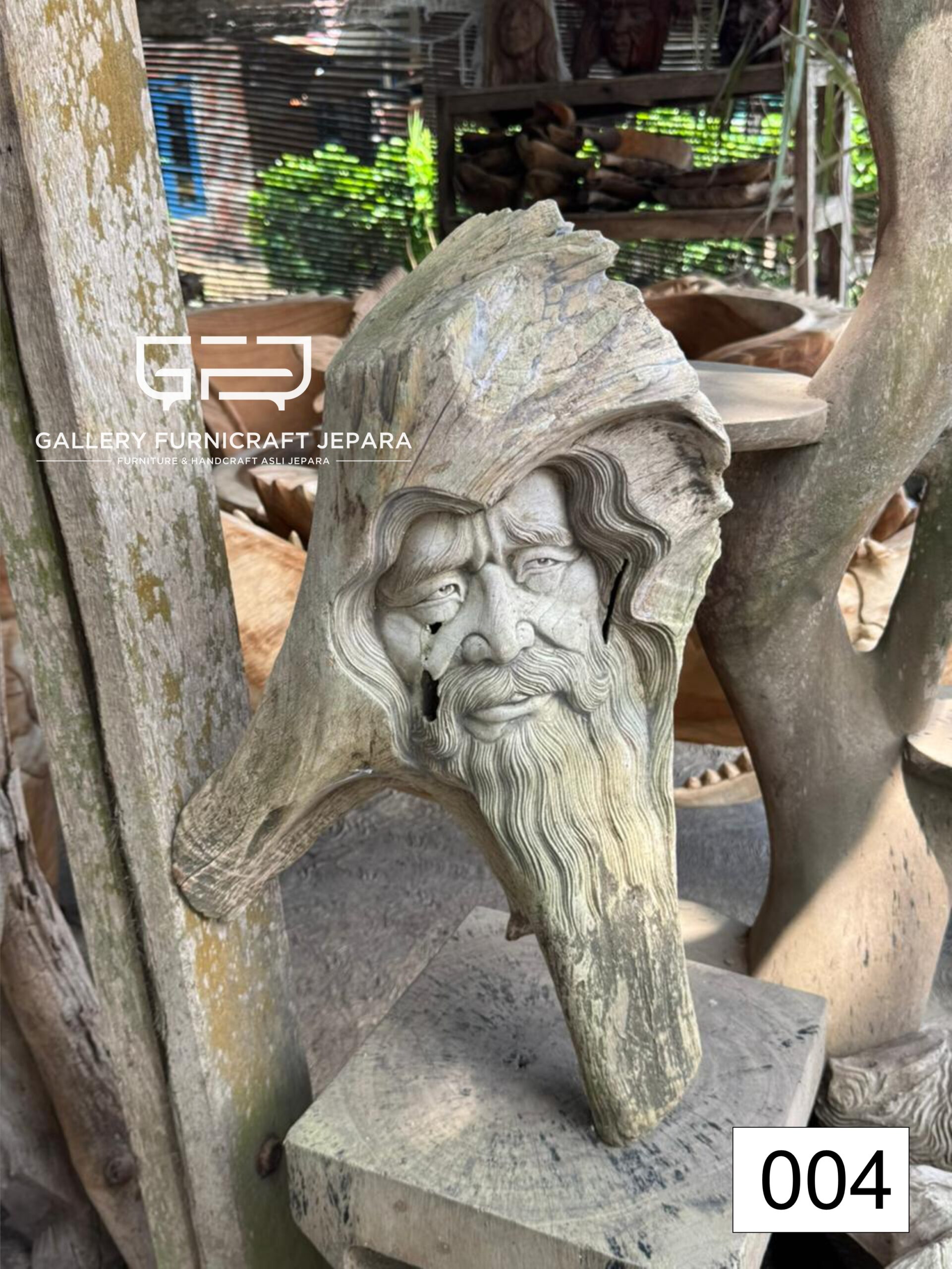 DEKORASI PATUNG UKIRAN WAJAH NATURAL KAYU JATI ANTIK Ready Stock, dekorasi patung ukiran wajah real kayu jati solid antik, diukir oleh seniman ukir berpengalaman asli jepara kota ukir, Original Product by Gallery Furnicraft Jepara Spesifikasi .