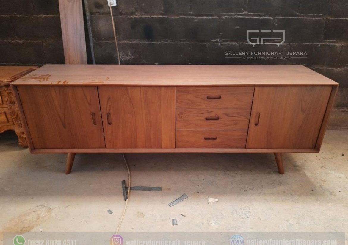 BUFET TV 3PINTU 3LACI MODEL MINIMALIS KOMBINASI RETRO cocok digunakan untuk meja tv/meja buffet/meja rias/meja hias dll, dengan bahan baku kayu jati kualitas A, finishing natural yang menampakkan .