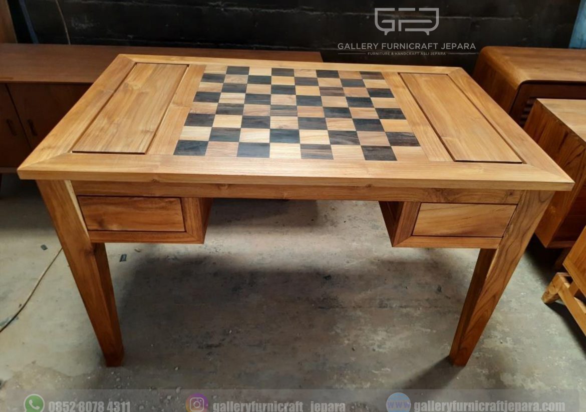 MEJA CATUR DENGAN 4 LACI KAYU JATI KOMBINASI SONOKELING cocok digunakan untuk meja catur/meja kopi/meja santai/meja teras dll, dengan bahan baku kayu jati kualitas A, finishing natural yang .