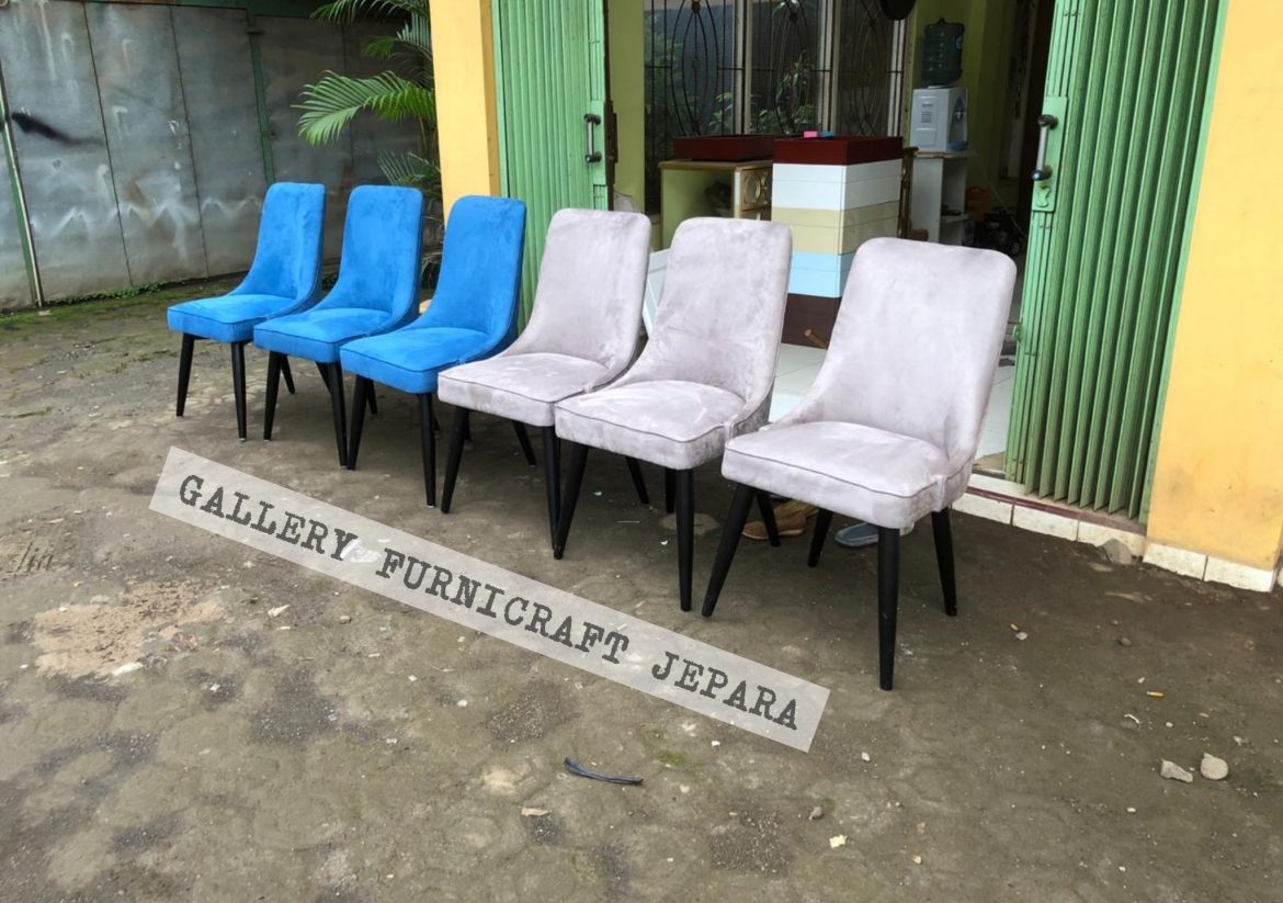 KURSI MAKAN BAHAN SUEDE KAYU JATI Cocok ditempatkan di Hotel, Villa, Apartement, Resto, Cafe, Rumah makan – Bahan Baku Kayu Jati – Kain Jok Suede warna azure / smoke – Finishing Black Gloss/Doff (bisa pilih) HARGA BELUM TERMASUK ONGKOS KIRIM EKSPEDISI TRUCK !!! pengiriman .