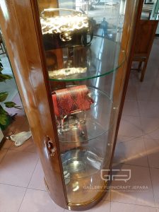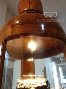 cocok digunakan untuk almari/lemari hias, almari pajangan, almari tas dengan bahan baku kayu jati kualitas A, finishing Natural yang menampakkan serat kayu jati asli terkesan lebih natural dan mewah