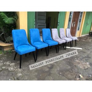 Jual Dining Chair Real Suede Azure Smoke Fabric Kayu Jati di Jepara Jawa Tengah