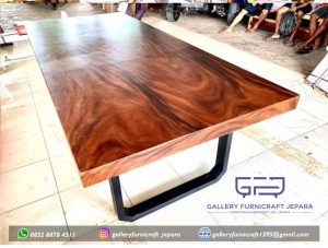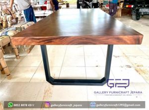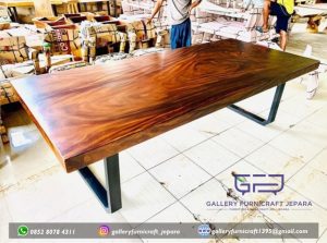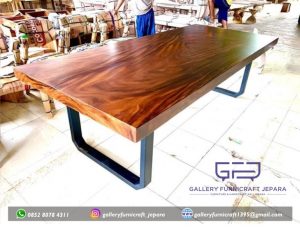 Meja Makan Berbahan baku kayu trembesi Solid dan kaki besi