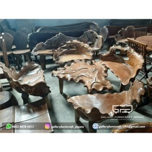 Jual Kursi Tamu Set Lenong Daun Kayu Jati Antik di Jepara Jawa Tengah