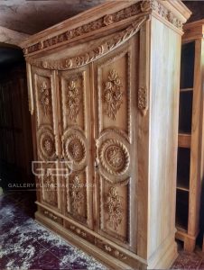 Jual Lemari Jati Mawar Slendang 3 Pintu Finishing Natural Glossy di Jepara Jawa Tengah