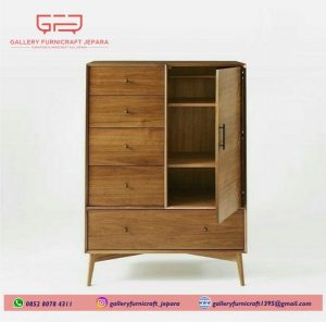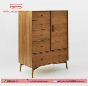 ” Lemari 1 Pintu 5 Laci Scandinavy Kayu Jati ”