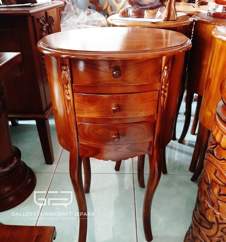 Jual Nakas Jati Oval 3 Laci Murah di Jepara Jawa Tengah