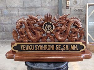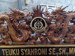 Papan nama model ukiran naga dengan lambang kejaksaan dan nama bisa request permintaan, bahan baku dari kayu jati pilihan dan finishing menggunakan natural melamine.