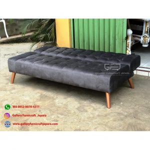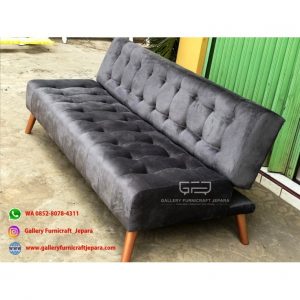 Jual Sofa Bed Retro Lipat Kain Beludru Abu di Jepara Jawa Tengah