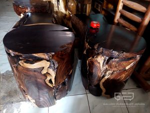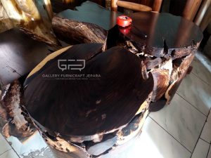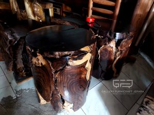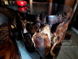 Cocok ditempatkan di Teras/Ruang Tamu/Ruang Makan/Cafe, Bahan baku akar sonokeling tua yang sudah erosi (keras, tahan cuaca) dengan corak antik, finishing melamine semi doff.