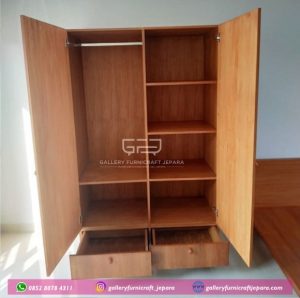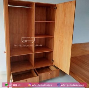 Lemari Pakaian dilengkapi dengan 2 pintu & 2 Laci dengan finishing Natural