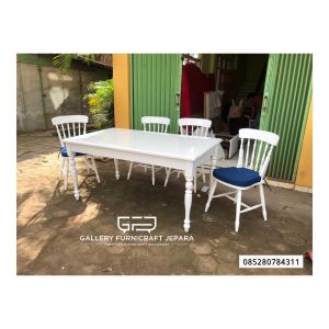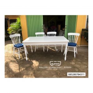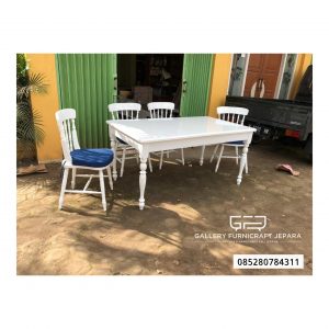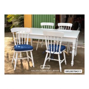 Meja Makan 4 kursi berkonsep antik vintage dengan finishing duco dan bantalan jok 😍