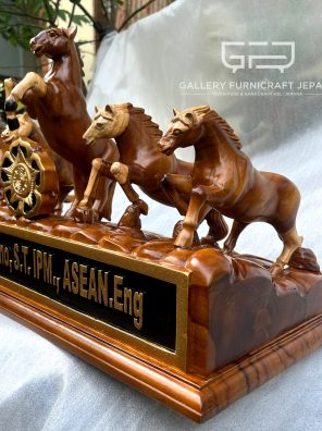 Papan Nama 5 Kuda Jantan Betina Kayu Jati Satin Glossy 60x25x35cm