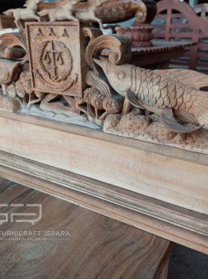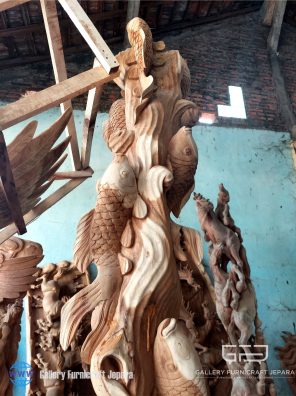 Patung 12 Ikan Koi Kayu Jati Solid Tinggi 250cm
