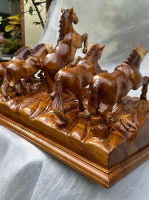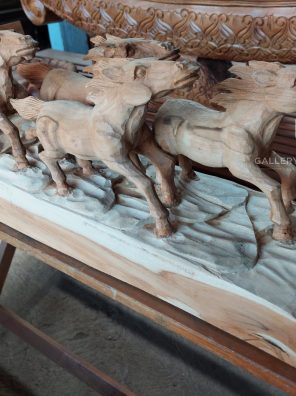 Papan Nama 5 Patung Kuda Kayu Jati 60x25x35cm
