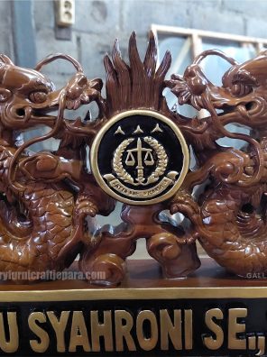 Papan Nama Kejaksaan Ukiran Naga 3d Kayu Jati – 50cm