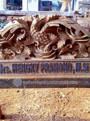 Papan Nama Custom VVIP – Ukiran Burung kombinasi Daun Jepara