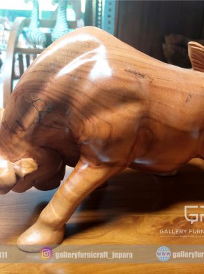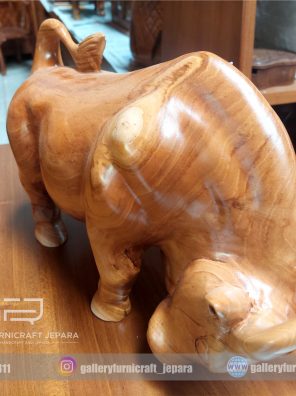 Patung Banteng Kayu Jati Solid 33cm