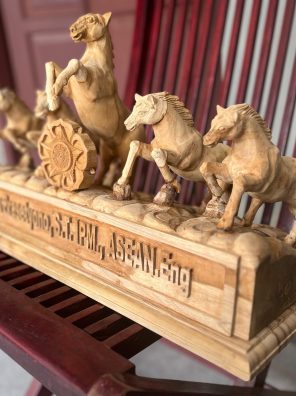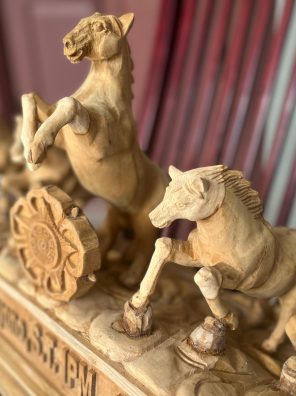 Papan Nama Patung Kuda Kayu Jati Finish