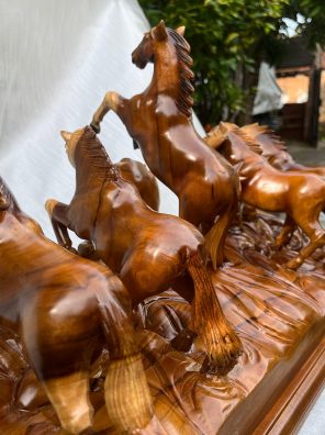 Patung 5 Kuda Papan Nama Kayu Jati Melamine Satin 60x25x35cm