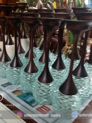 Set Tempat Lilin Minimalis Jati Kaca Isi 3