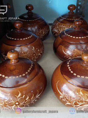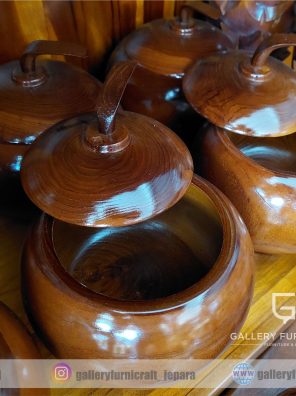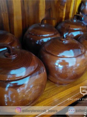 Toples Labu Kayu Jati Natural Doff 15x15x20cm