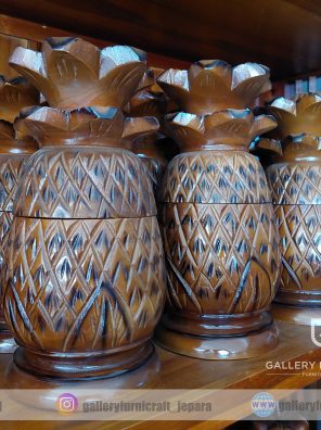 Toples Nanas Kayu Mahoni 12x12x28cm