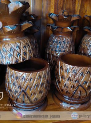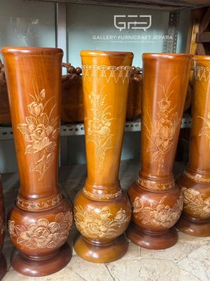 Vas Bunga 60cm Kayu Jati Semprong Cukit