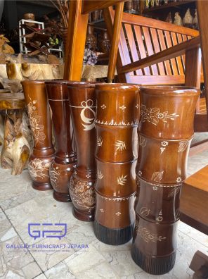 Vas Bunga Bambu Guci Kayu Jati 15x60cm