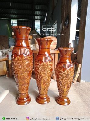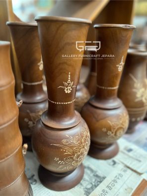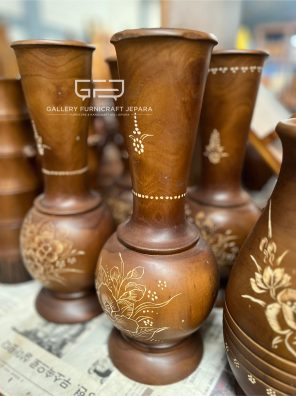 Vas Guci Kayu Jati Isi 3 Motif Bunga