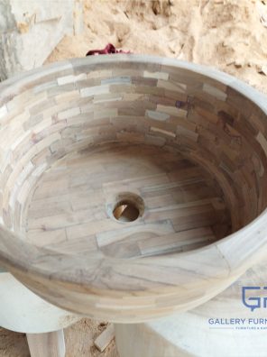 Wastafel Kayu Jati Fosil 50cm