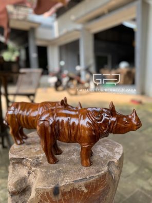 Custom Patung Badak 30cm Kayu Trembesi Solid
