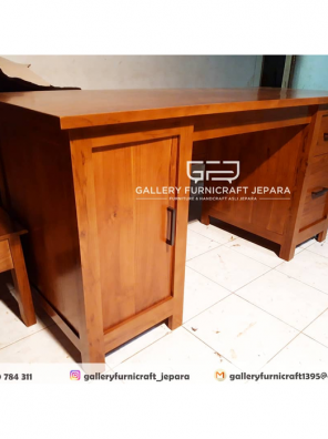 (Mohon selalu tanyakan tentang pengiriman barang sebelum cek out)MEJA KANTOR KAYU JATI 2 laci dan 1 pintu ( PRE ORDER !!! )