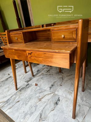 Meja Belajar Retro Vintage Minimalis Kayu Jati Perhutani 110x50x100cm