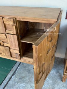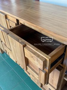 Buffet 3D Kayu Jati dilengkapi 4 Laci dan 2 Pintu, material kayu Jati, Finishing Natural Melamine, product by Gallery Furnicraft Jepara.
