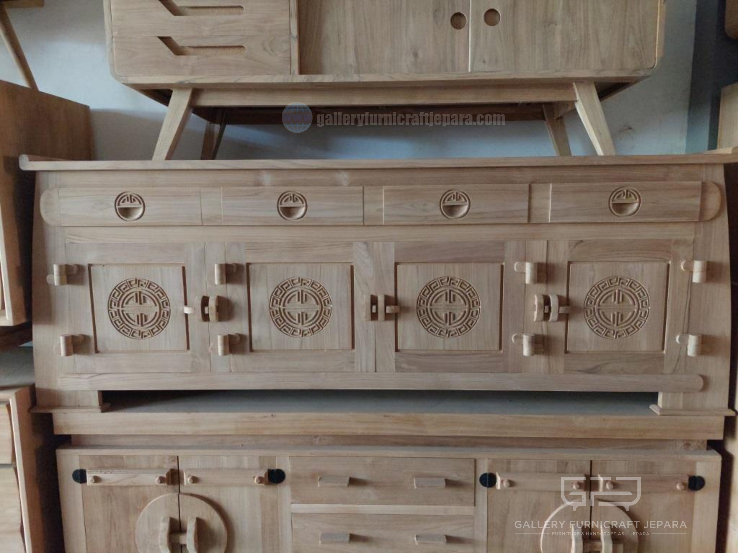 Bufet hongkong classic dilengkapi 4 pintu dan 4 laci, bahan baku kayu jati grade A kualitas terbaik, Tukangan presisi dan konstruksi kuat, harga diatas untuk unfinish (bisa juga request finishing dengan penambahan biaya)