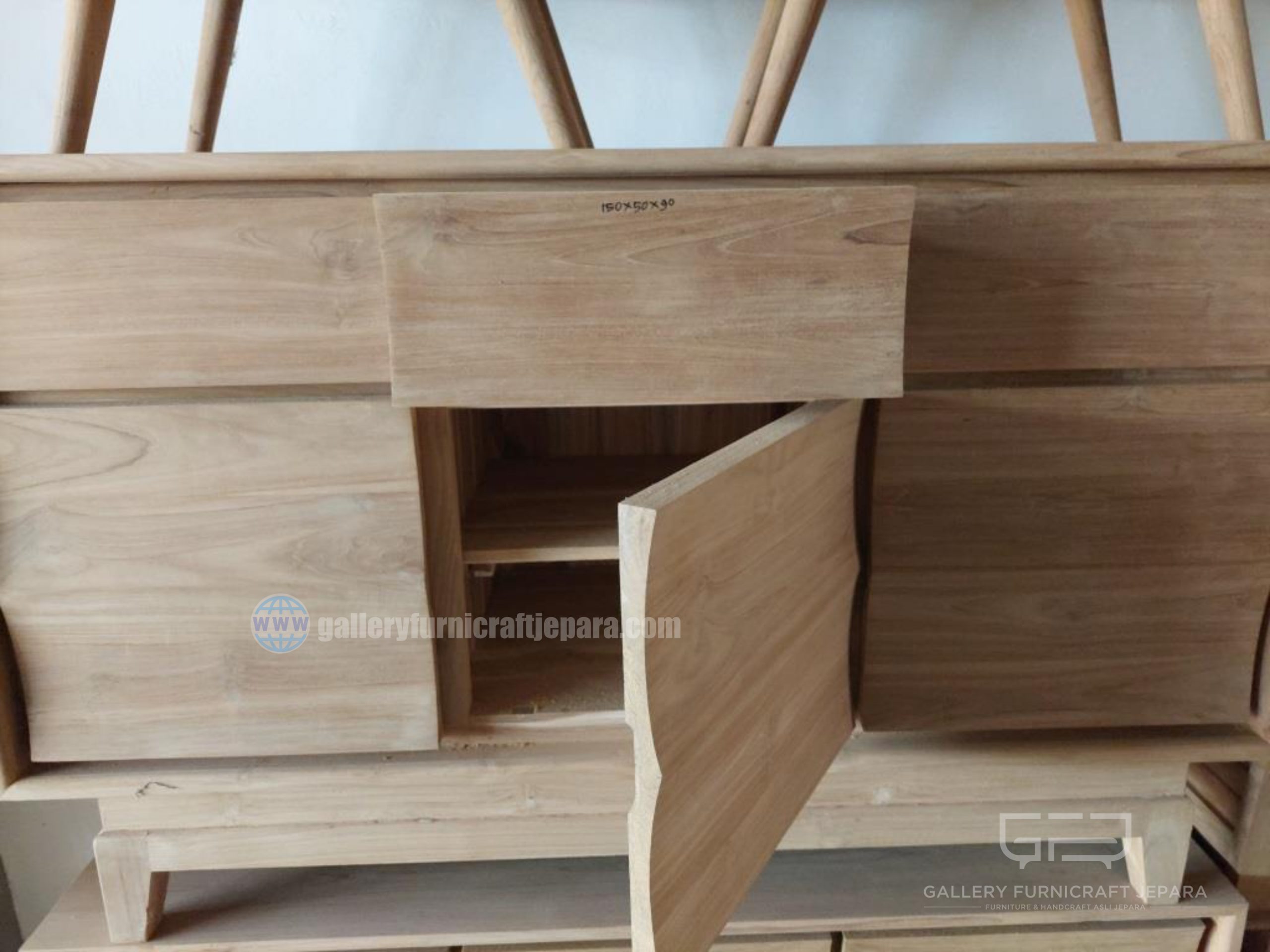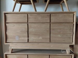 Bufet Minimalis Tipe Ombak, Tersedia 3 pintu dan 3 laci, bahan baku kayu jati grade A kualitas terbaik, Tukangan presisi dan konstruksi kuat, harga diatas untuk unfinish (bisa juga request finishing dengan penambahan biaya)