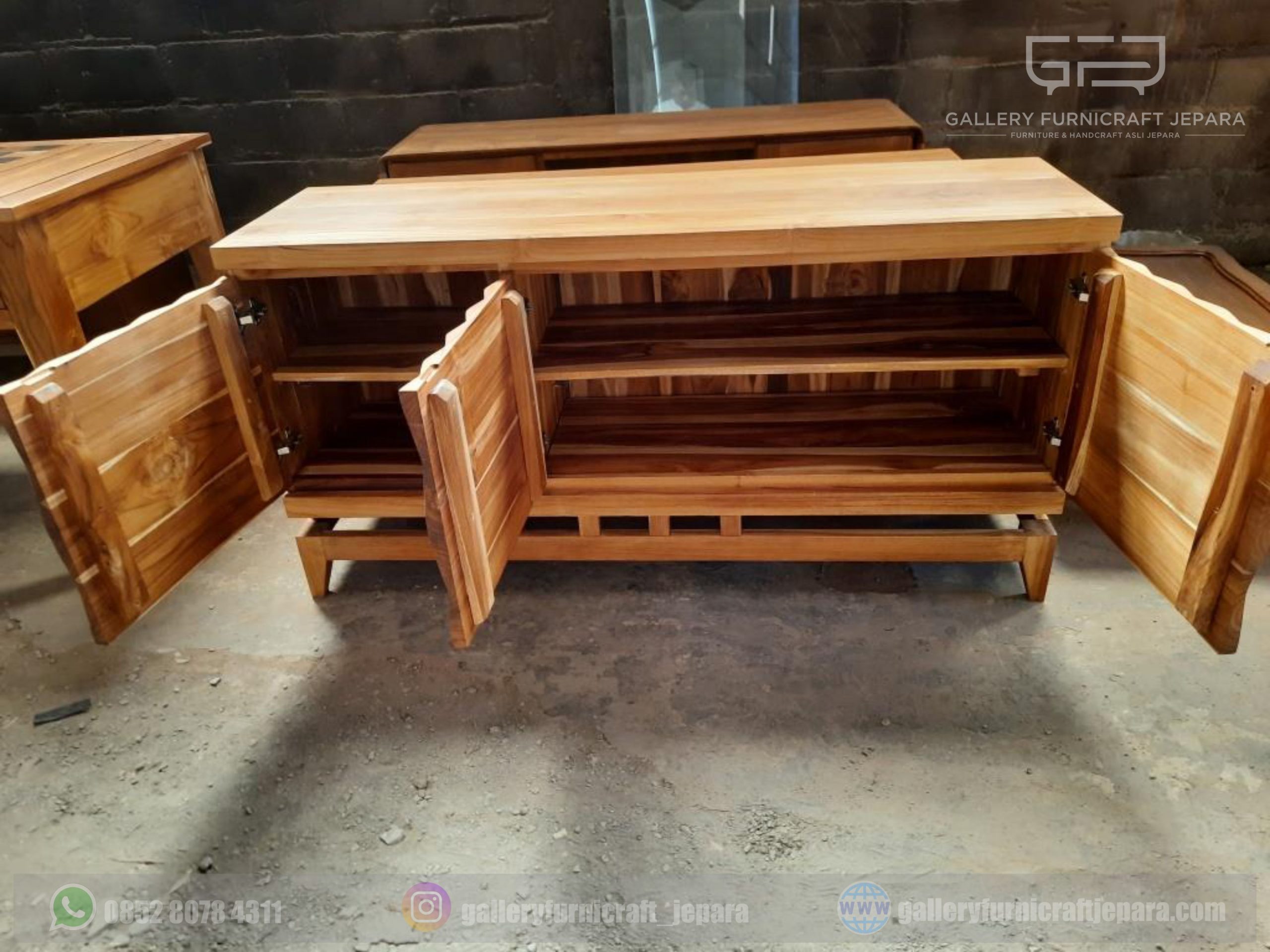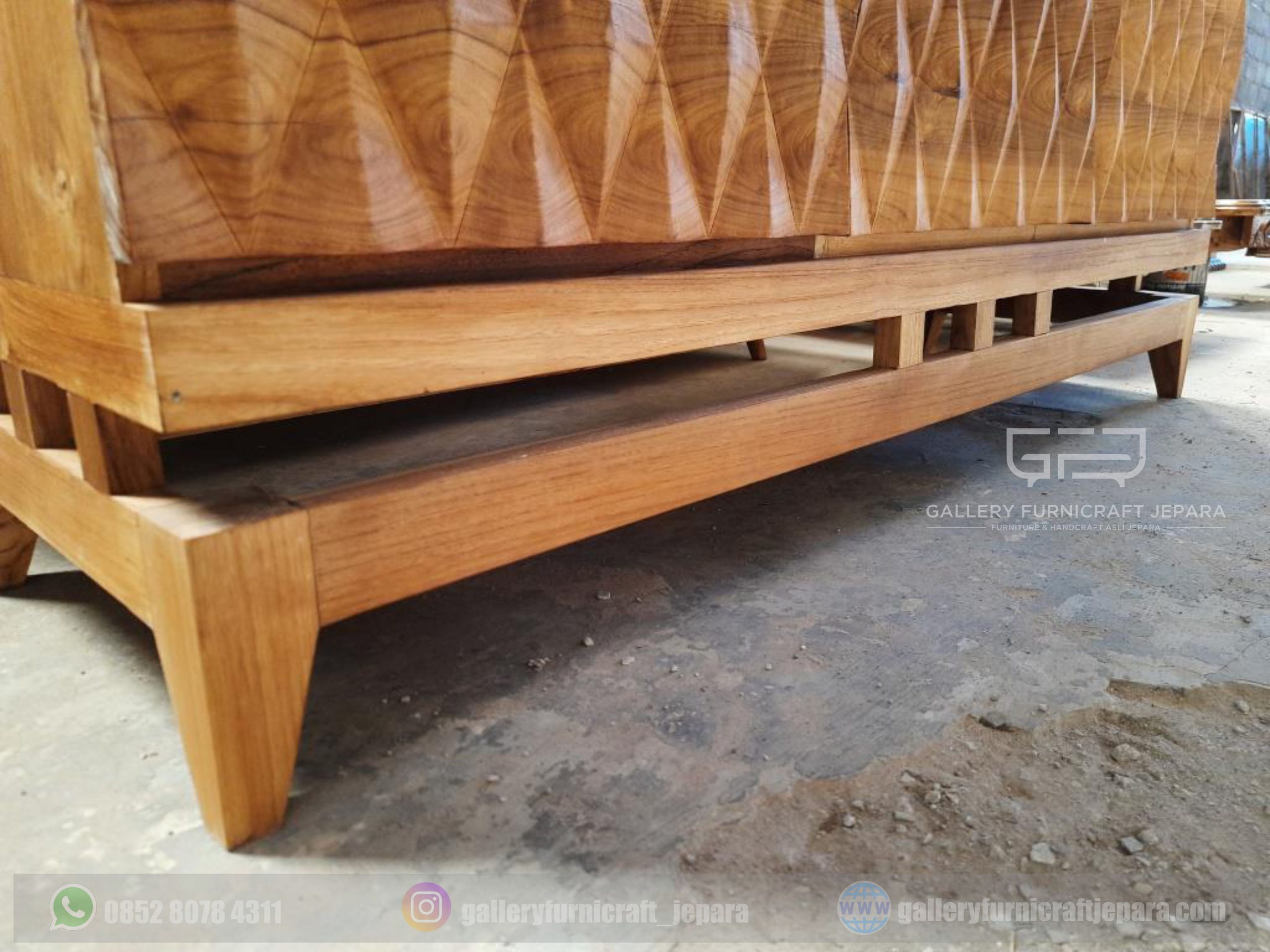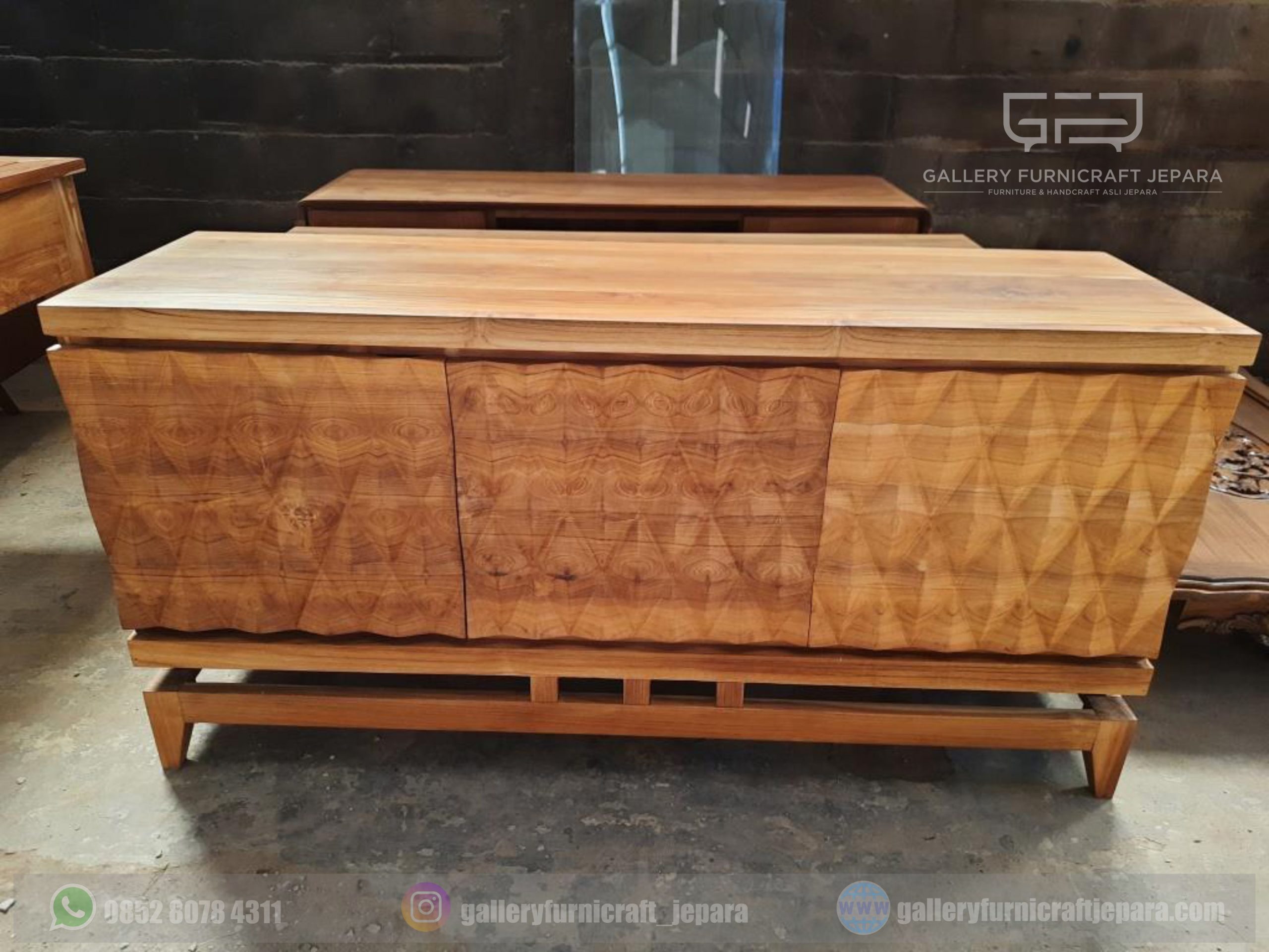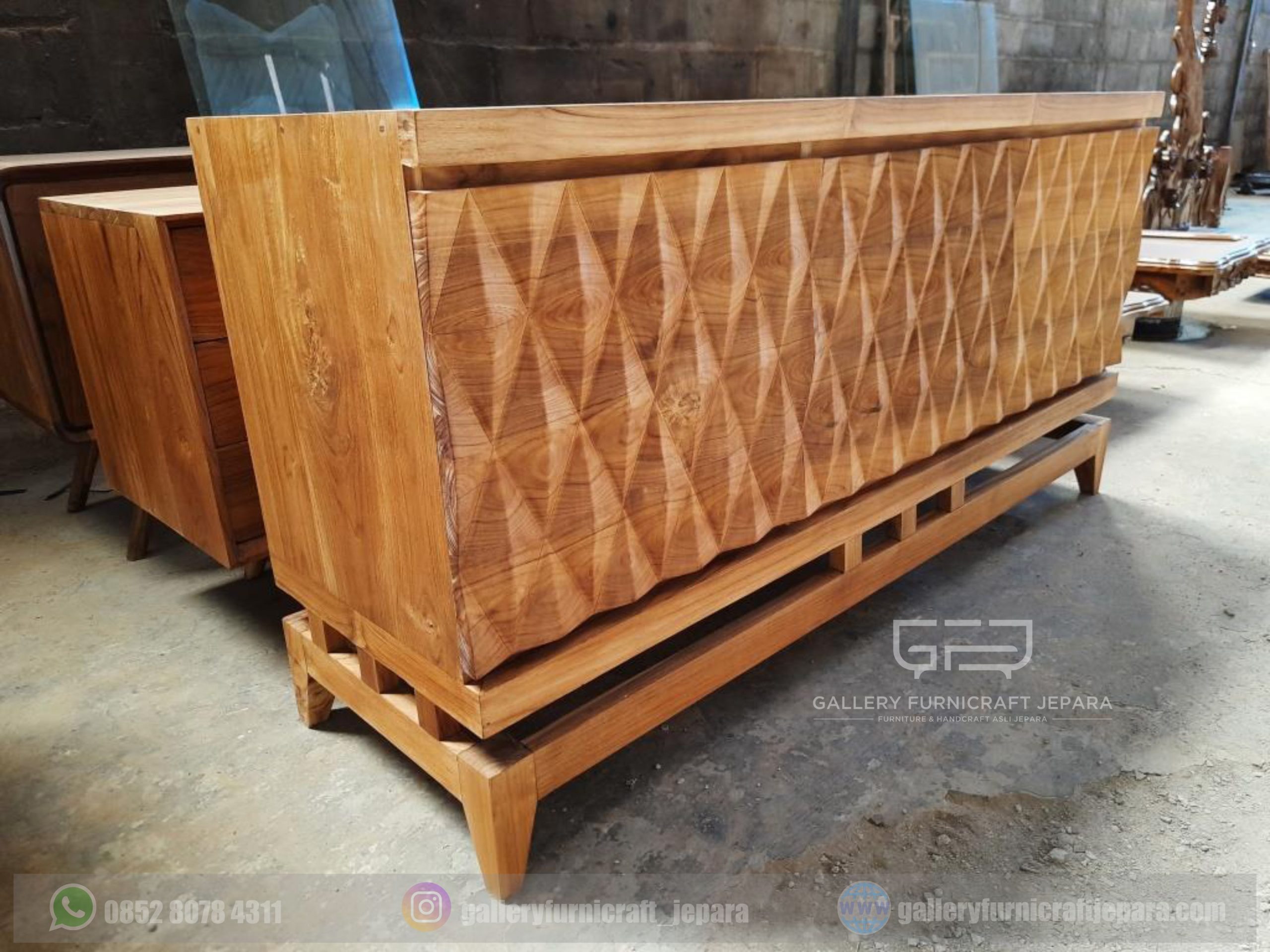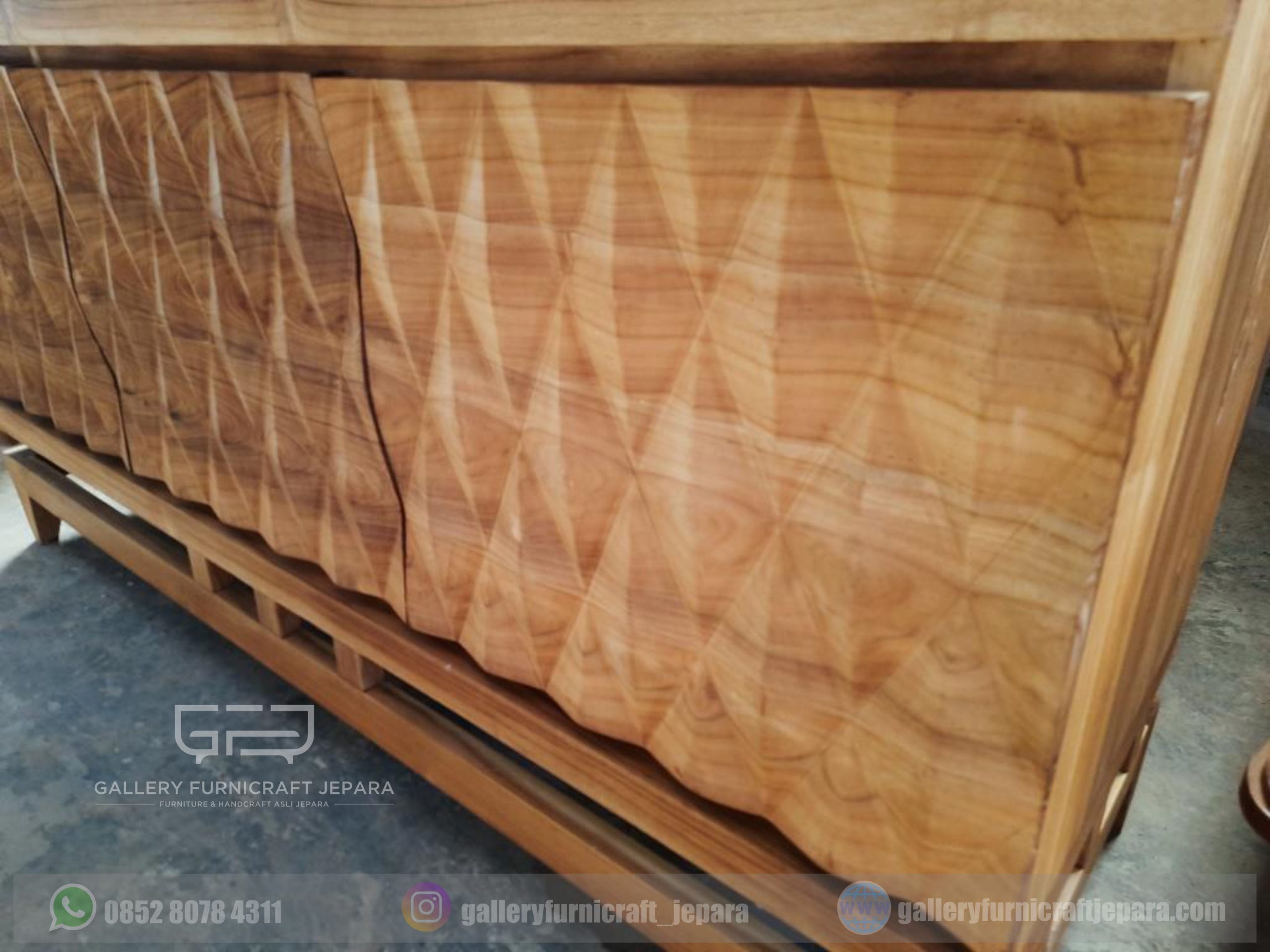 BUFET 3 PINTU UKIRAN PRISMA 3D KAYU JATI JEPARA [export quality product]