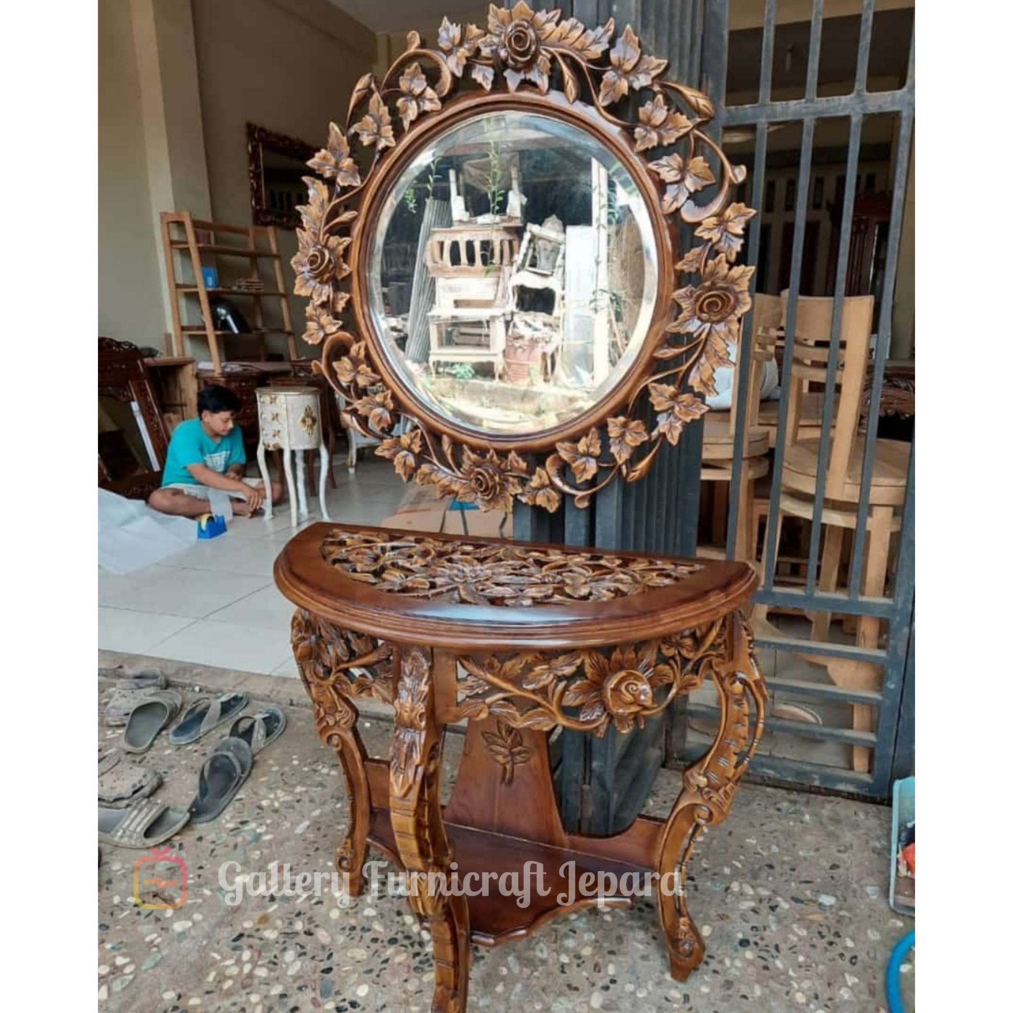 CONSOLE CERMIN UKIRAN JEPARA SET MEJA DAN CERMIN [export quality product]