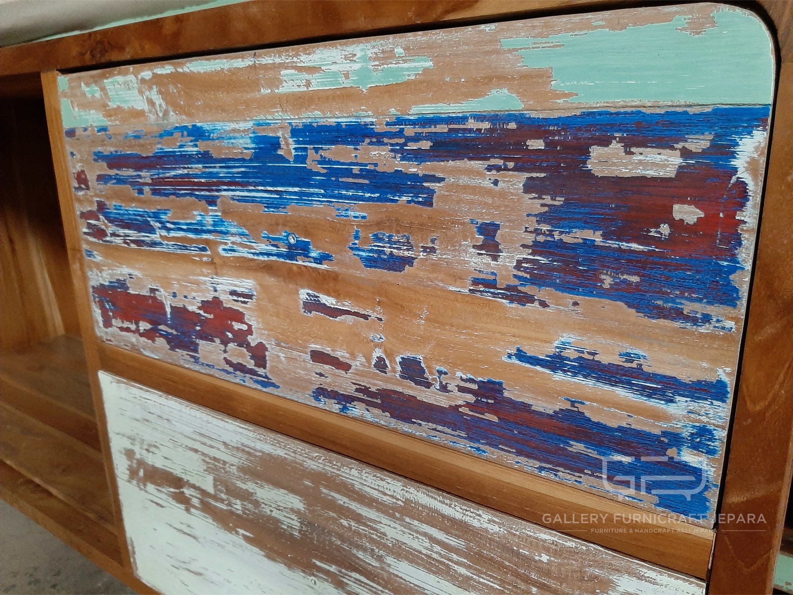 cocok digunakan untuk meja tv, bufet laci dengan bahan baku kayu jati yang coraknya bagus dipadukan dengan finishing antique scretch
