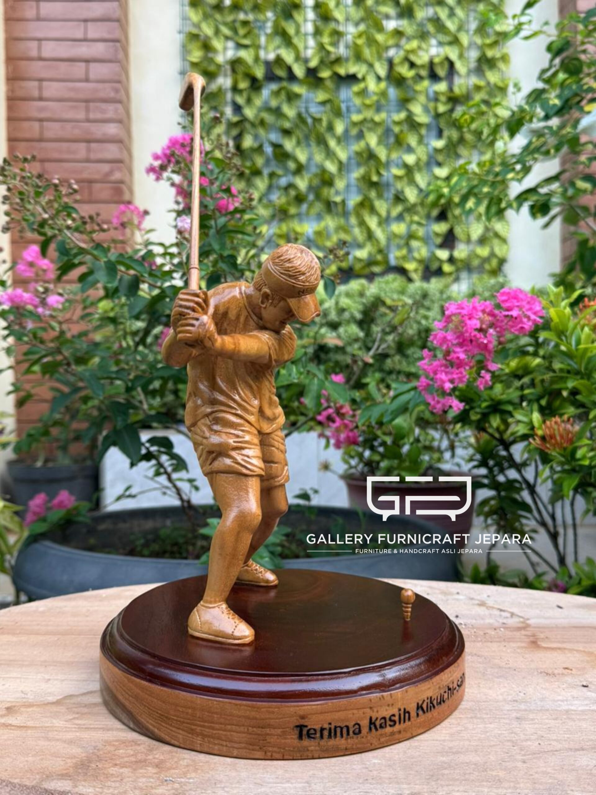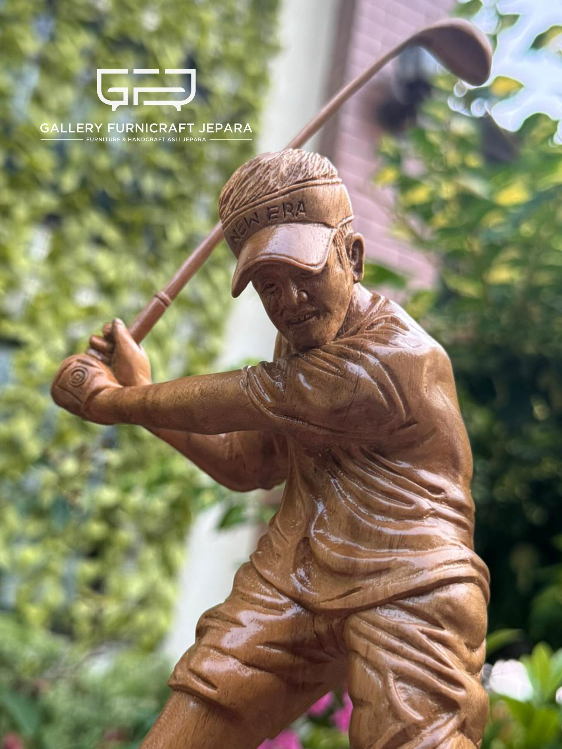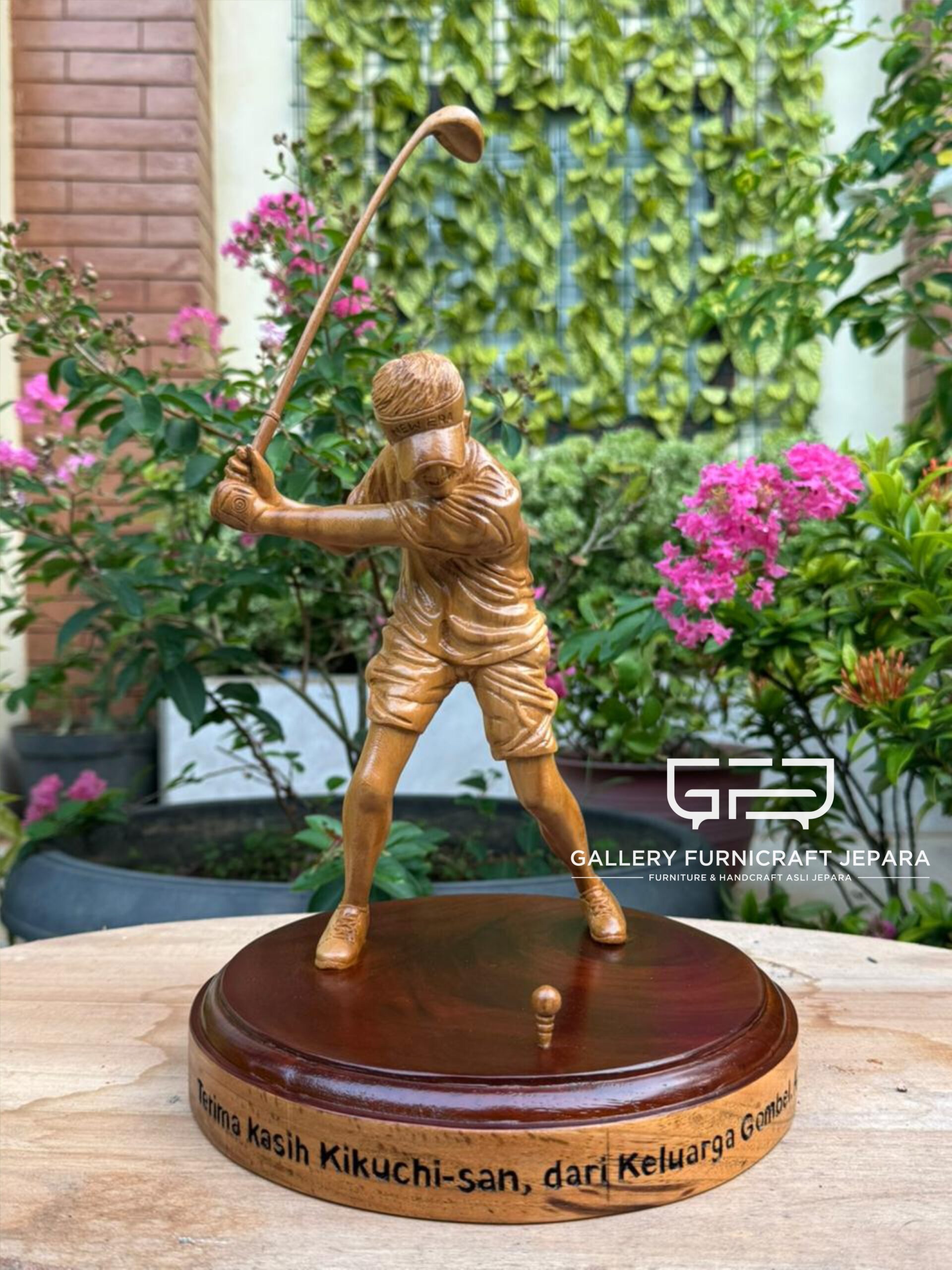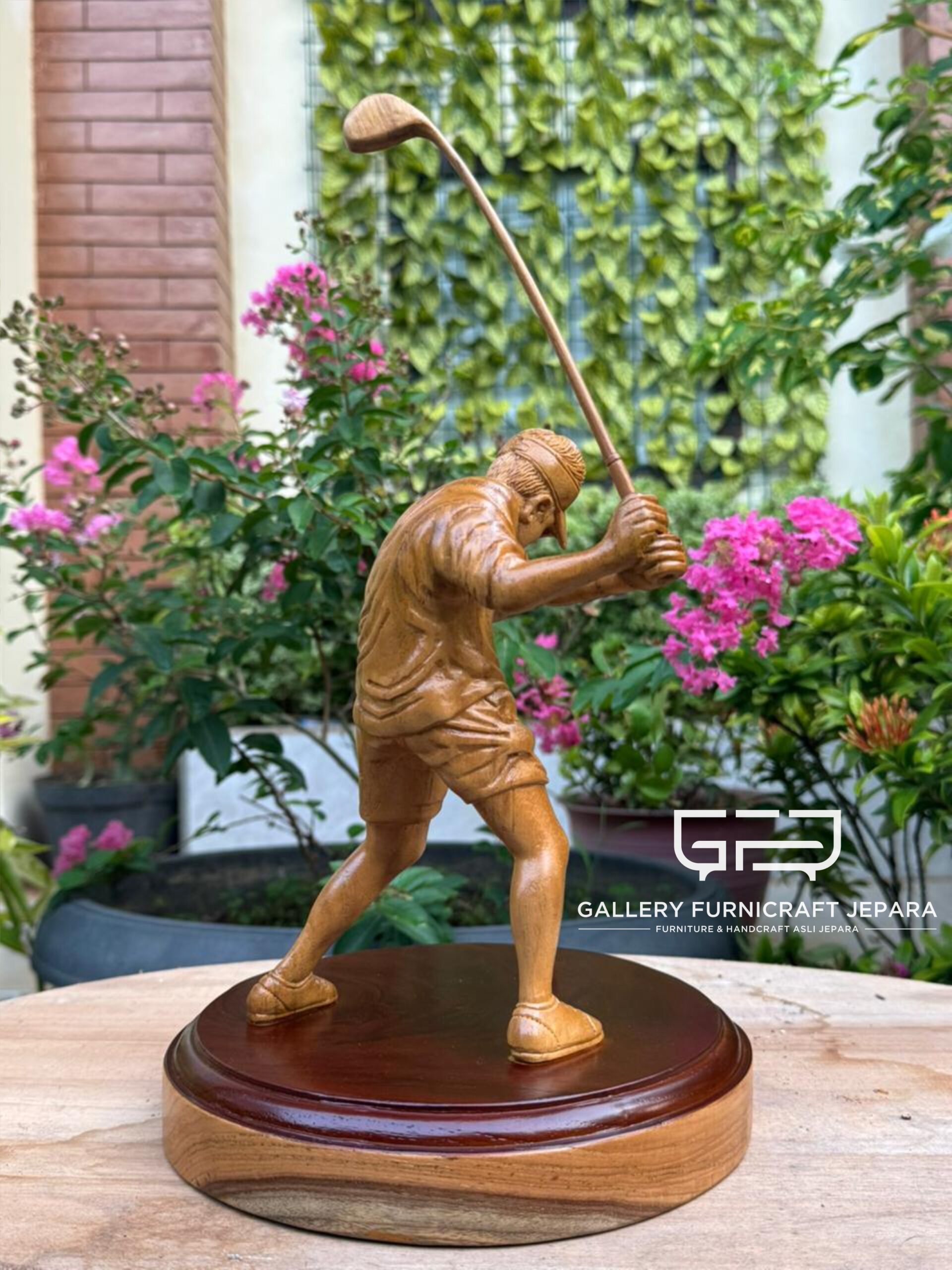 Open Pre Order, dekorasi patung bermain golf, diukir oleh seniman ukir berpengalaman asli jepara kota ukir, Original Product by Gallery Furnicraft Jepara