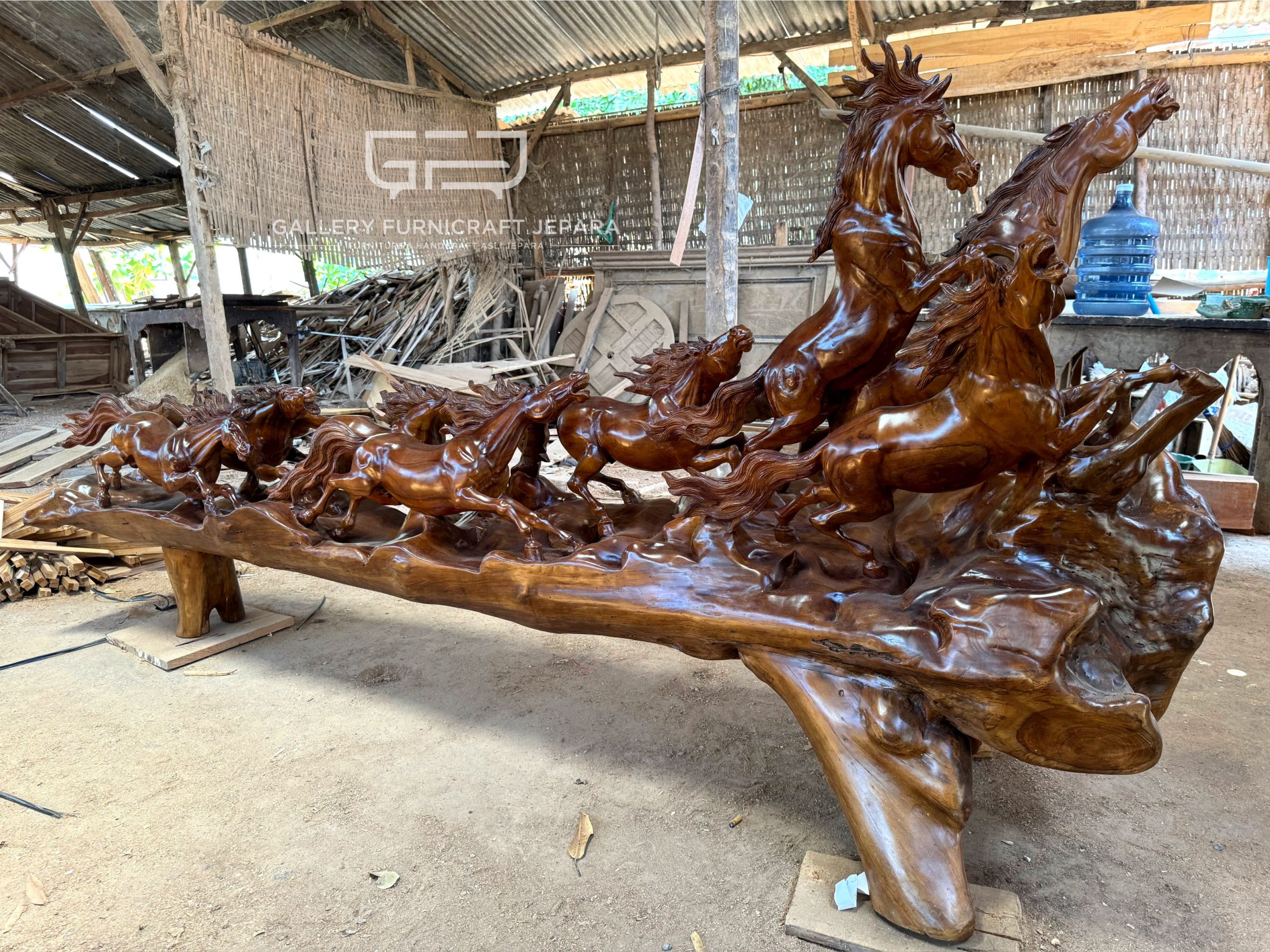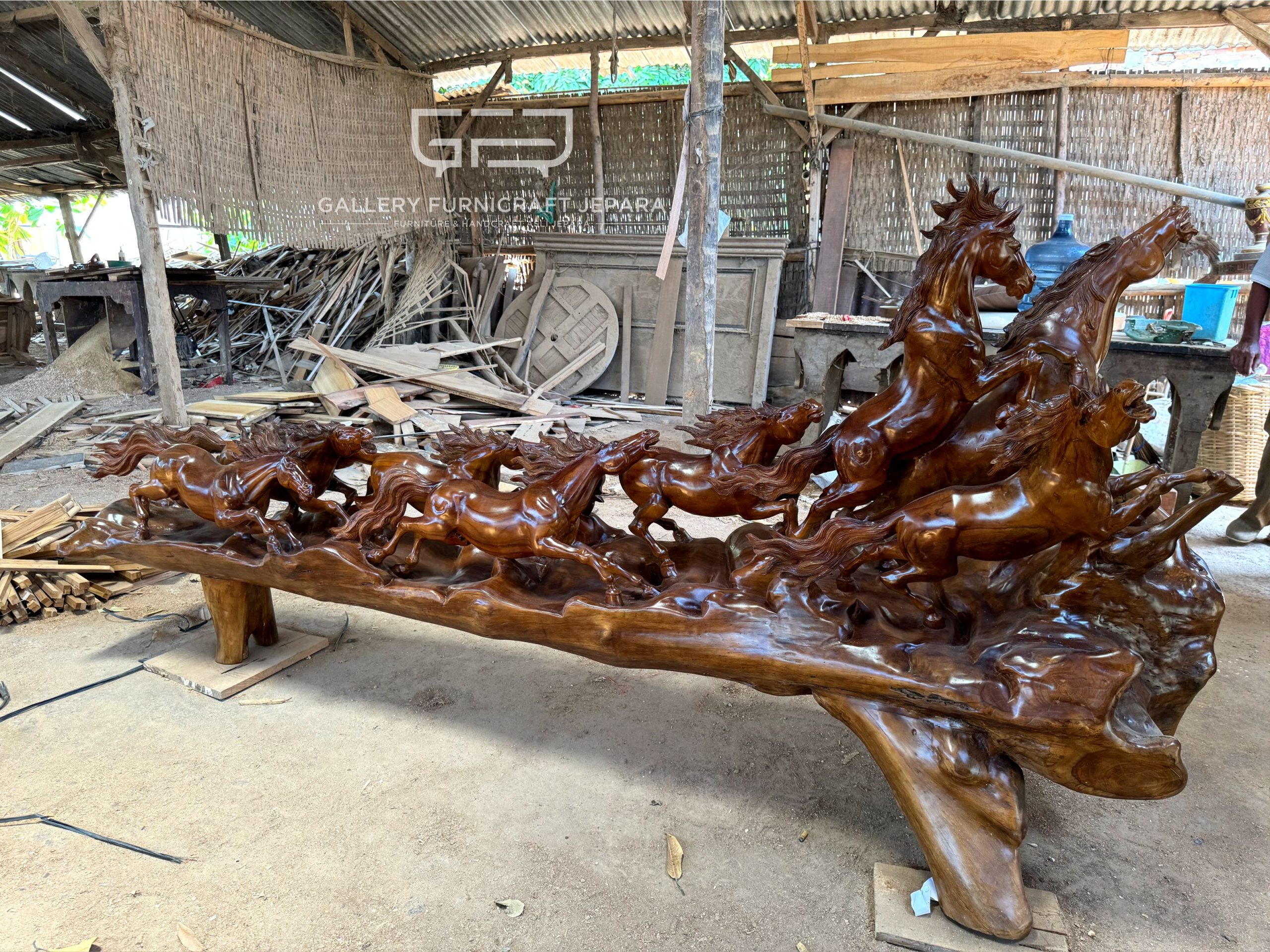 DEKORASI RELIEF KUDA LARI MATERIAL KAYU JATI SOLID 250cm || READY STOCK