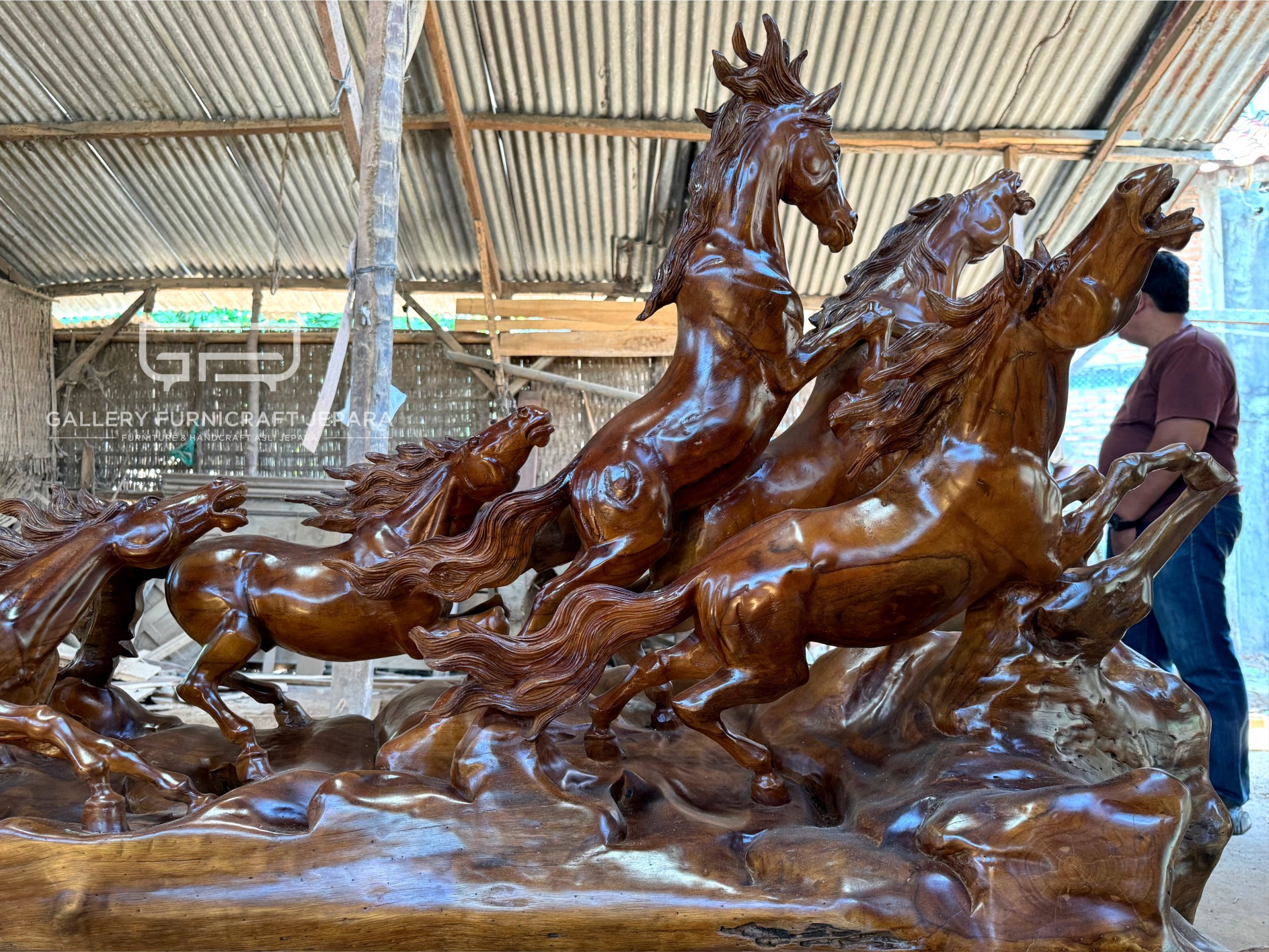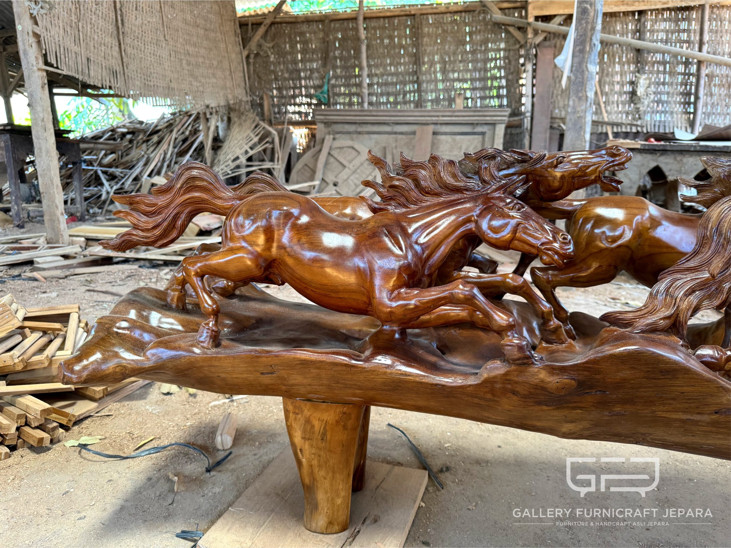 Dekorasi Patung Kuda Lari Kayu Jati Solid 250cm