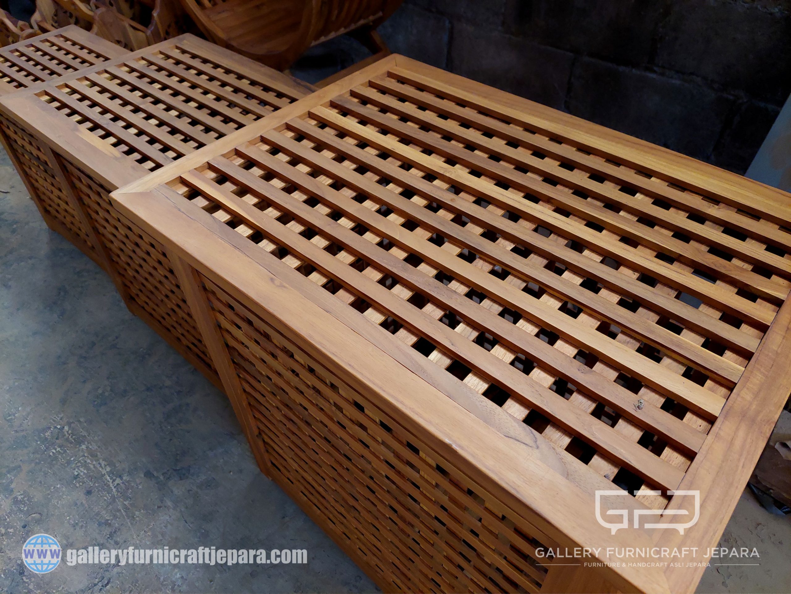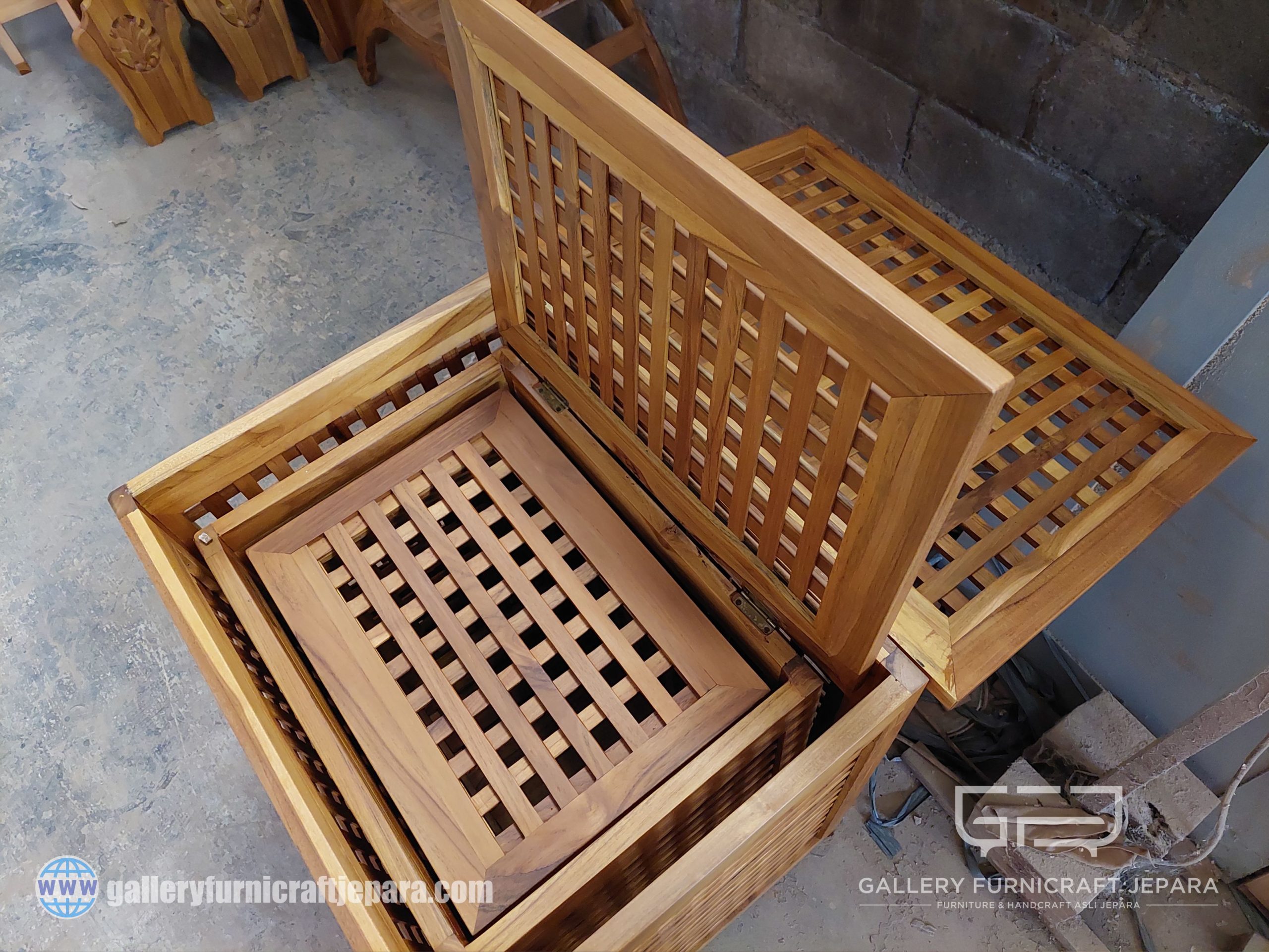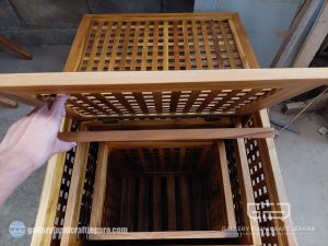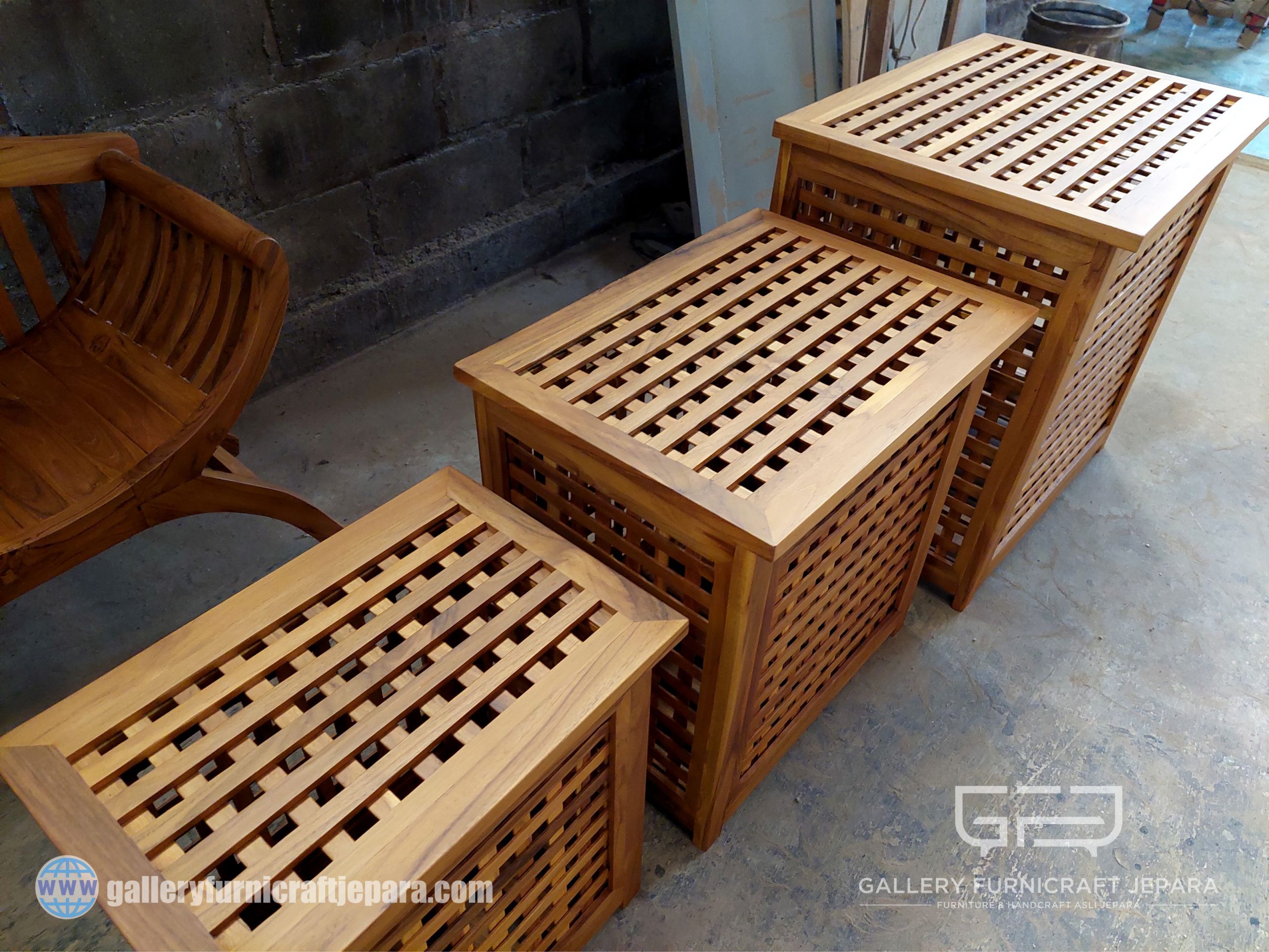 Keranjang baju kotor 1 sett isi 3 unit, material kayu jati kualitas terbaik (jati perhutani)kuat dan tidak mudah patah, finishing melamine doff yang menampilkan serat indah kayu jati.